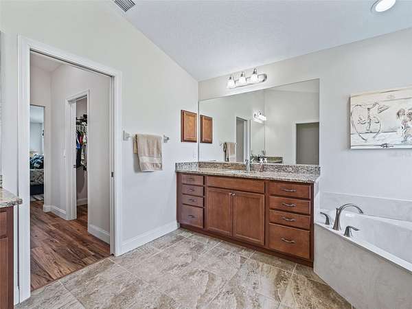 The great room boasts soaring ceilings, a 65" mounted TV, and a sleek electric fireplace--ideal for entertaining or relaxing. The master en-suite offers spa-like comfort with a Roman walk-in tiled shower, soaking tub, his and her vanities, his and her walk-in closets, and a private water closet.