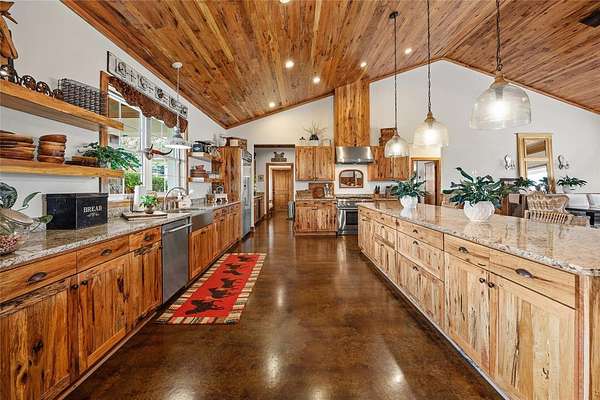 The property wraps gracefully around the cozy home, offering peaceful views of your animals from every window. Inside, you'll find high-end finishes including a Generac 20KW whole-home generator, exceptional Thermador appliances, and a massive 13-foot island--the ideal gathering space for holidays and events.