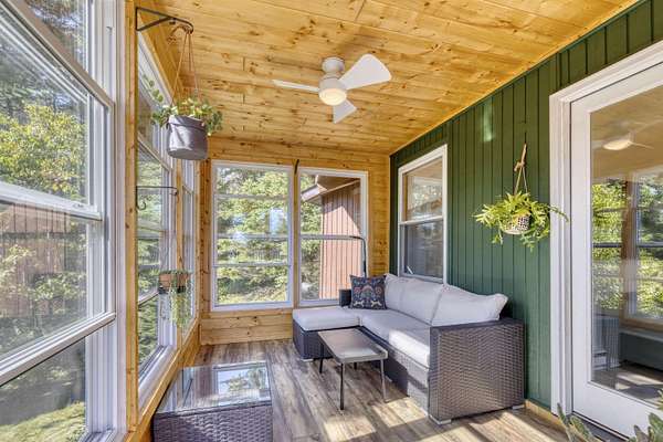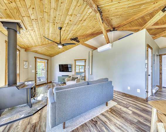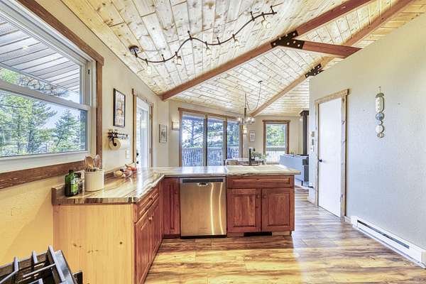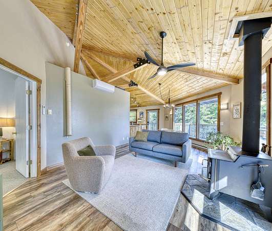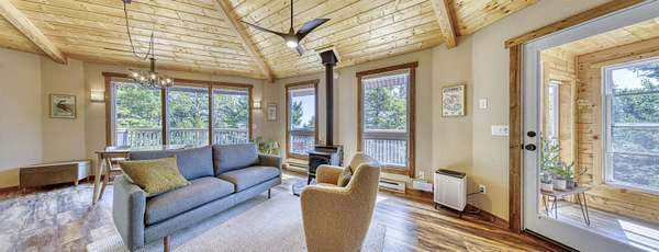 Enjoy the spectacular views from a modernized treehouse-built home. Wonderful, open space with beautiful nature views from every window. Situated in a North Shore Forest of white & red pines, birch, poplar, and a lush native understory which provides a perfect home for all the birds and critters of the area. Conveniently located near three beautiful Minnesota State Parks: Split Rock (3 mi), Gooseberry Falls (10 mi) and Tettegouche (10 mi), the Superior Hiking Trail, and the paved Gitchi-Gami State Trail just across the road! This owner has made many improvements in their short time in ownership. Updates to the home include propane brought in for a tankless on demand water heater/boiler (ready to convert to propane fired heat as an alternative to the existing electric baseboards). New flooring and a Murphy bed that gives you a guest room and an exercise room all in one. Paint throughout. New 2025 appliances to maximize propane efficiency - washer, dryer, range/oven, combi-boiler. There are also upgraded storm doors, updated lighting/fans, re-supported decking, new top deck rail, and upgraded exterior locks. The driveway has been partially resurfaced to withstand the seasons and a nice turn around off the driveway has been added. The forest has also been well cared for - dead trees have been cleared and the views of Lake Superior and surrounding woods just pop! Great move in ready property, plenty of room for friends and family to stay in the home. Does not quality for a STR due to being on a private road.