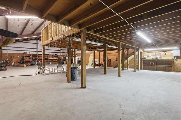 The centerpiece is an impressive 40x100 insulated steel building featuring (3) 12-ft roll-up doors and a 13-ft sliding door, plus a 6" concrete floor—perfect for equipment, hobbies, or a workshop. Above, a HUGE loft provides exceptional storage, and out front you’ll find a massive 100x20 concrete pad ideal for additional parking or workspace.