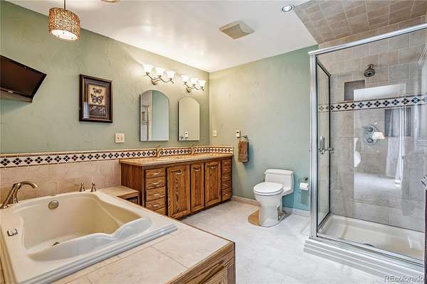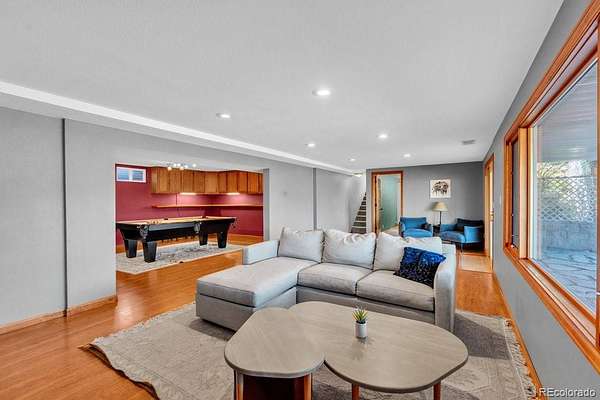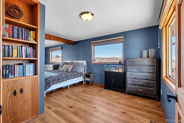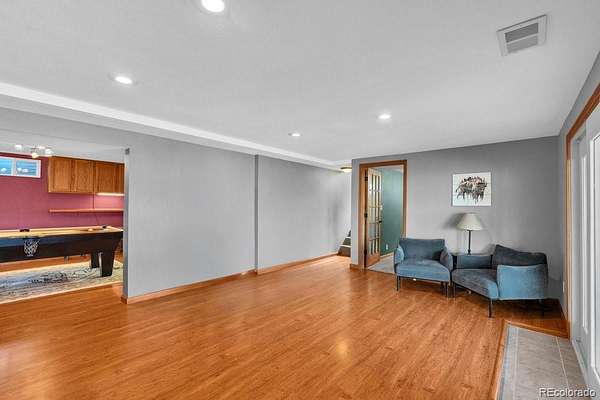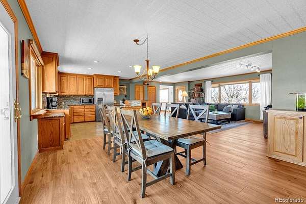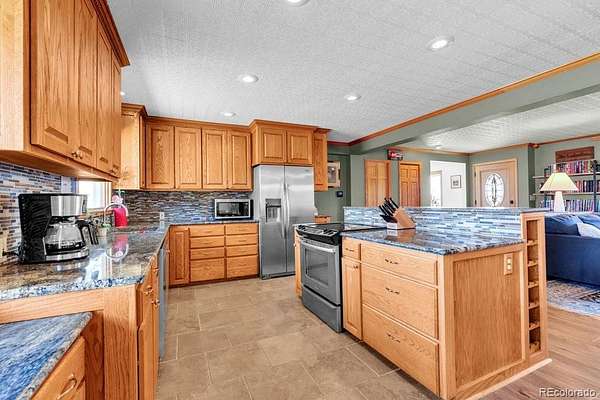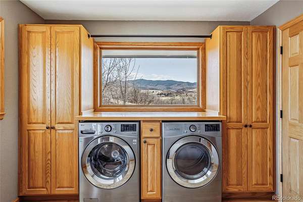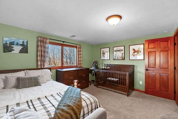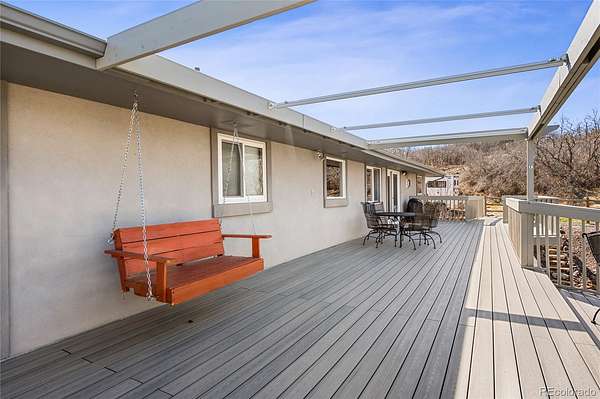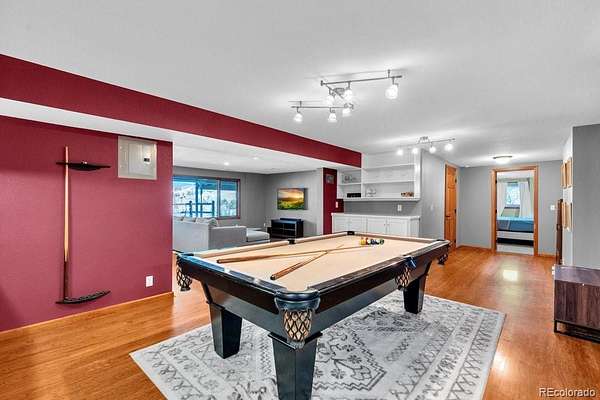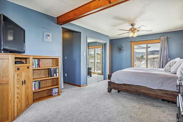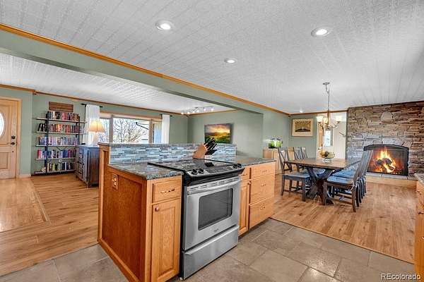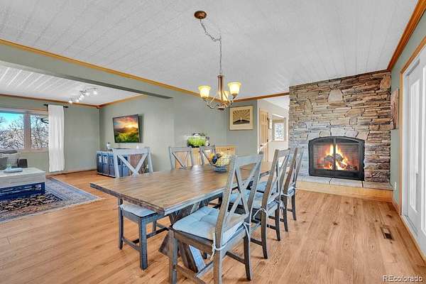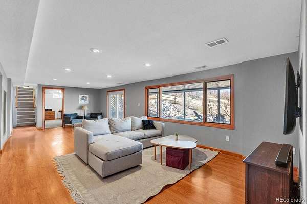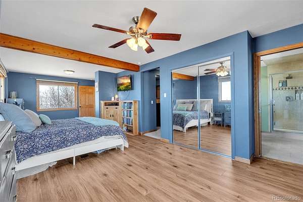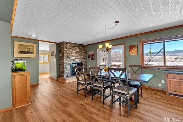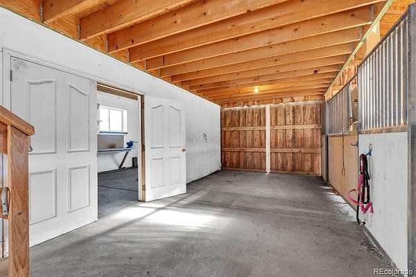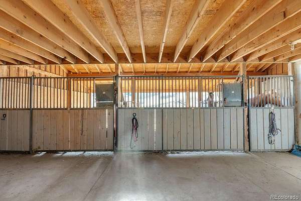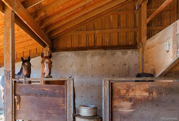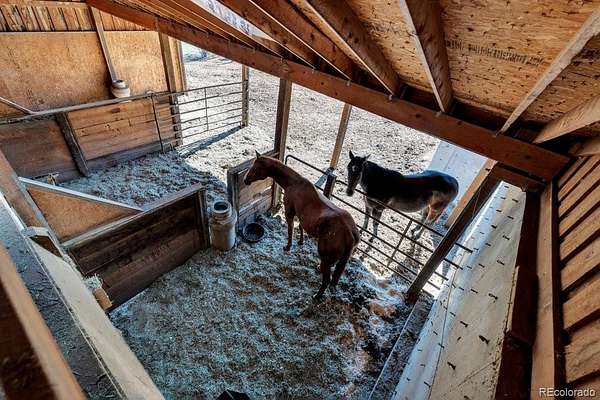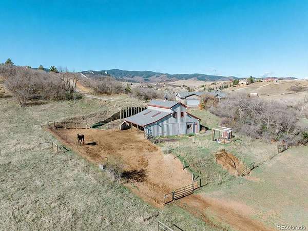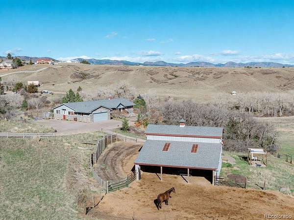 Tucked away at the end of a private cul-de-sac on 5 quiet acres, this exquisite 3500 square foot stucco & stone home is located within the sought-after equestrian community of Indian Creek Ranch. This beautiful home features new flooring, embossed ceiling tiles, floor-to-ceiling stone gas fireplace, lots of windows all framed by breathtaking mountain views. Designed as a culinarian’s dream, the kitchen boasts granite countertops, custom backsplash, new dishwasher, 42-inch high cabinetry w/crown molding, built-in wine rack & a butcher bar. Enjoy the convenience of 100% main-floor living with an expansive primary suite featuring a reading nook, new flooring, dual closets w/built-in drawers, glass doors to the deck and a 5-pc bath featuring dual sinks, a jet tub & heated floors. Even the laundry & mudroom are thoughtfully positioned on the main level to maximize ease & functionality. The walk-out basement expands your living space with 3 additional BRs, full bath and a billiards room which includes the pool table! Glass doors lead to a fenced flagstone patio, complete with a firepit & custom rock water feature—perfect for Colorado evenings. The home also features a humidifier, whole-house filtration system, a 2022 A/C unit and don't forget the attached, oversized 2-car garage, complemented by an expansive driveway & apron that offers plenty of room for guest parking! Equestrians will find everything they need in the 3-stall heated barn, equipped with electricity, Nelson Automatic Waterers, a tack room & storage for plenty of bales of hay. Within the barn is an insulated & heated workshop which provides the perfect space for projects. Located adjacent to a bridle path, the property also grants access to a community arena, playground & clubhouse. Despite its privacy, you remain minutes from top-rated schools, shopping & dining. With its rare combination of beauty, comfort, friendly neighbors & low HOA fees, this is the ultimate retreat for you & your horses.