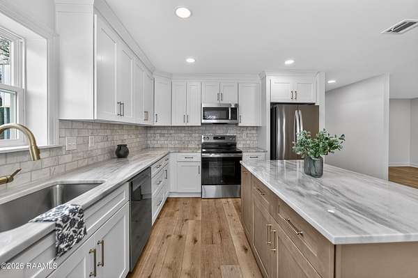 Est $2,063/moA rare find in Youngsville! Tucked away just off Verot School Rd, this fully remodeled 4 bed, 2 bath barndominium sits on over 2 acres with plenty of room to spread out. The home has been completely updated with modern finishes throughout, making it move-in ready from day one. In the rear you'll find a 620 sq ft attached shop with a roll-up door -- perfect for the car or truck enthusiast, extra storage, or weekend projects. Located in Flood Zone X and has never flooded. Eligible for all loan types.