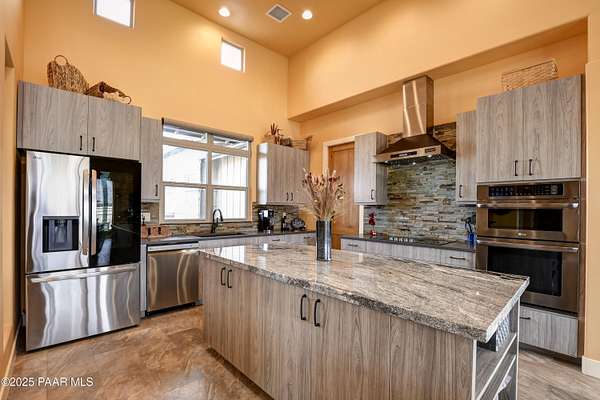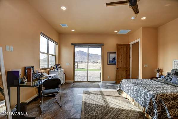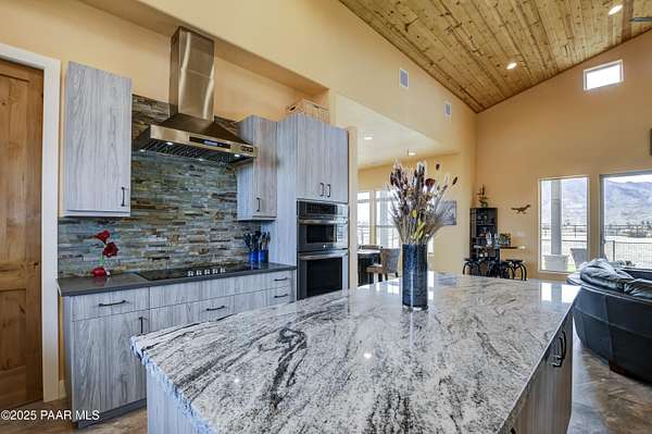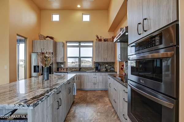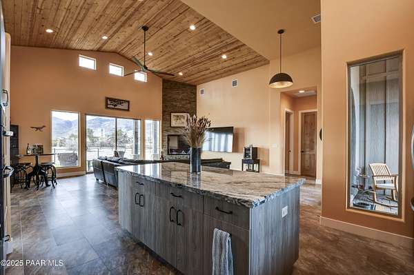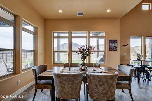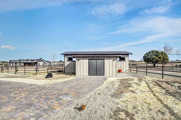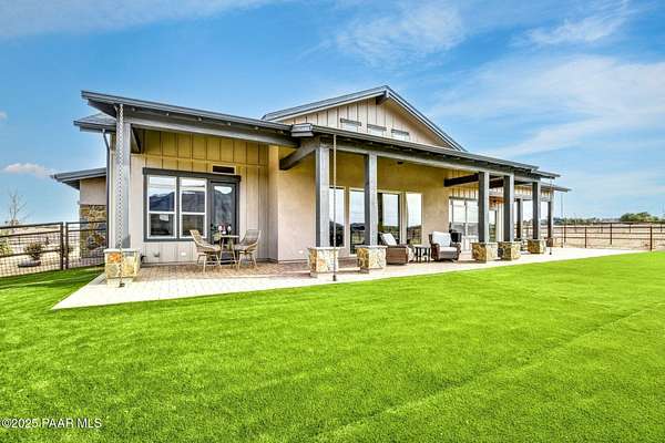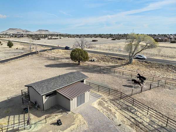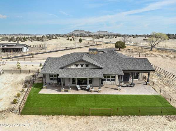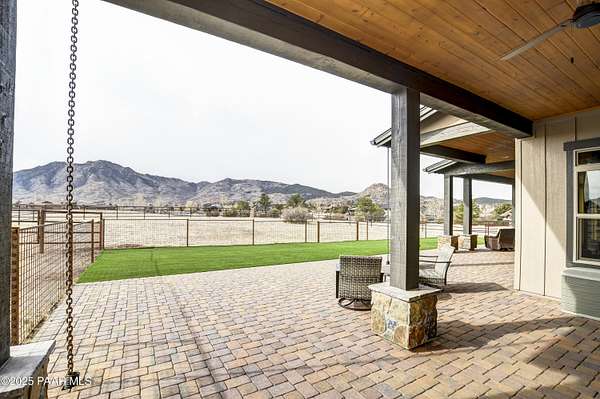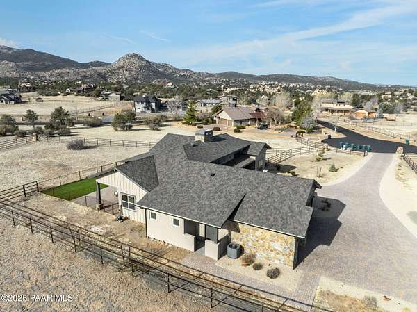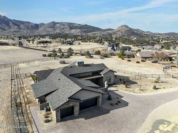 Welcome to a captivating home where beauty and functionality blend seamlessly in the sought-after American Ranch community. This exquisite 2,559 sft 3 bedroom 4- bathroom retreat is situated on a generous 1.95 acres and is perfect for horse lovers, offering ample space for your equine companions as well as the protective barrier of the proximity of WVR adjacent to the horse accommodations keeping in mind the safety of your equine family members. As you step through the front door, your greeted by a warm and inviting atmosphere inviting you to experience the serene Prescott lifestyle The open concept living area optimizes space and light with vaulted wood detailed ceilings. The spacious modern kitchen boasts beautiful cabinetry, complimented by gorgeous quartz countertops and a large walk-in pantry, perfect for entertaining. Nestled in the backdrop of the magnificent Granite Mountain, providing breathtaking views from sunrise to sunset!