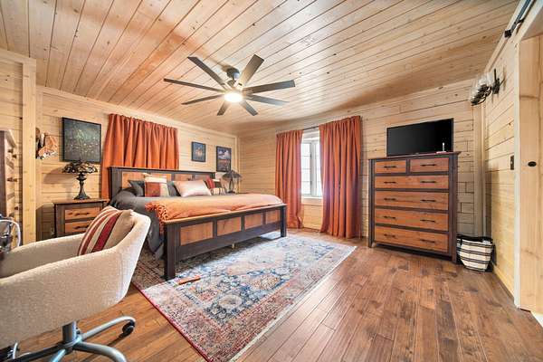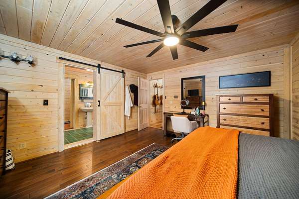 - 1 st Floor Master Bedroom, Blinds, Ceiling Fan, Doorwall, Vaulted Ceiling(s), Wood Laminate