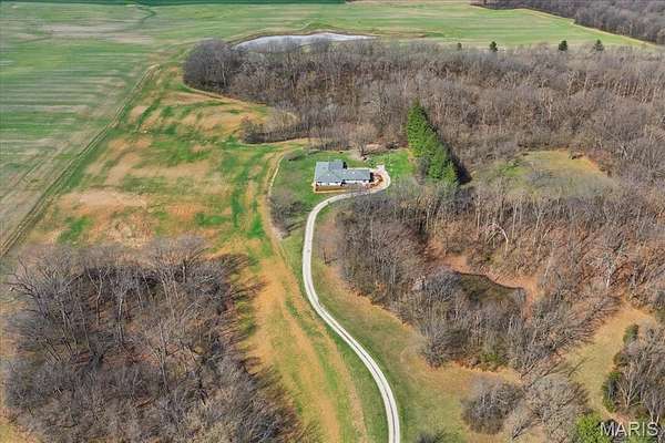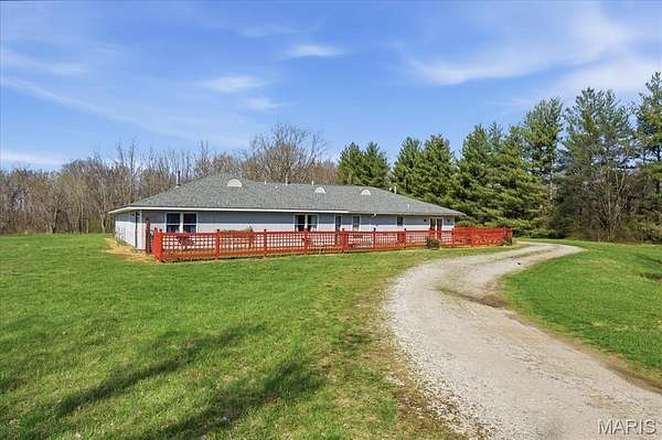 Don’t miss your own private paradise on just over 17 picturesque acres in the desirable Waterloo School District. This one-of-a-kind home offers over 3,000 square feet of open living space with 4 bedrooms and 2 full bathrooms. The main living area welcomes you with a spacious living room featuring a see-through fireplace shared with the dining room, perfectly positioned next to the kitchen for effortless entertaining. The center of the home includes a bonus room, primary bedroom, and full bath. The opposite wing offers exceptional flexibility with three additional bedrooms, a full bath, second family room with a wet bar/kitchenette, walk-in cedar closet, walk-in changing room, and a large bonus room highlighted by an indoor Master Spa swim spa. An oversized attached two-car garage and shed provide abundant storage. Approximately 10 acres of farmland are currently leased, offering added income potential.
