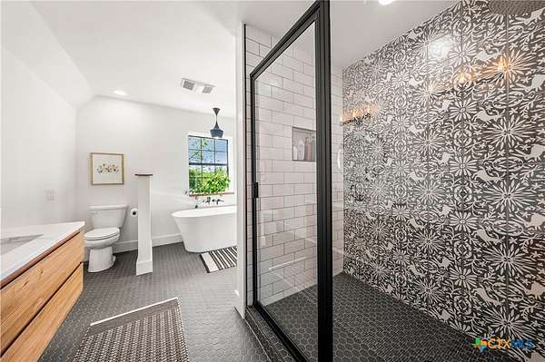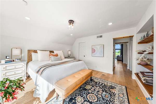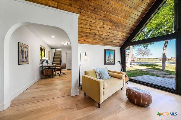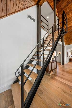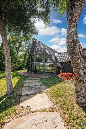 Just minutes from both Temple and Waco, this alluring A-frame abode sits perched upon six rolling acres overlooking the Big Elm Creek. Lovingly remodeled and transformed into the family's ultimate weekend getaway, the home works superbly as a primary residence, country retreat, Airbnb; or all three! ~ A three bedroom (an open loft can be a fourth bedroom), three bathroom (plus a powder room) layout is neatly sequestered across roughly 2,800 square feet of space that's homey, cozy, light, and airy. ~ From the main living room (which enjoys panoramic views of the front of the property) to the central dining room and kitchen; everything in this home feels like it's just where it should be while showing a restrained, but sophisticated aesthetic that's as visually pleasing as it is calming. ~ At the back of the home, the primary suite enjoys an ensuite laundry facility, spa like bathroom, and overlooks picture-perfect back deck and creek. Upstairs, accessed via two, private staircases, each suite enjoys its own private bathroom while the central suite also benefits from a loft which can double as a second living room, open office, or as configured, a fourth bedroom. ~ Outside, just off the kitchen, an outdoor dining area is tucked beneath the trees. Beyond the home, at the front of the property, the home's oversized, 525 square foot garage is accompanied by a 900 square foot shop thus allowing ample space for cars, hobbies, projects, tools, and toys! Just beyond the driveway, the lovely in ground pool is well within view of the home, but just far enough away to give a bit of peace and quiet when summer pool parties take place! ~ At the back of the property, mature trees, rolling hills, and the Big Elm Creek make for a dream playground open to exploration, horseback riding, power sports, and more! ~ This is surely a dream property. Call or text to come see this exclusive residence TODAY!