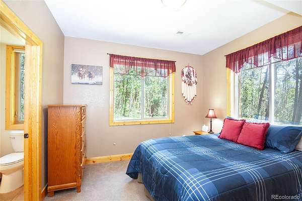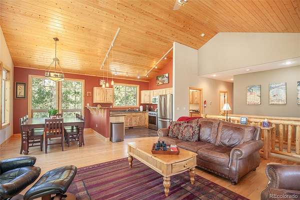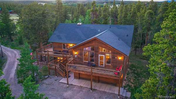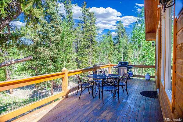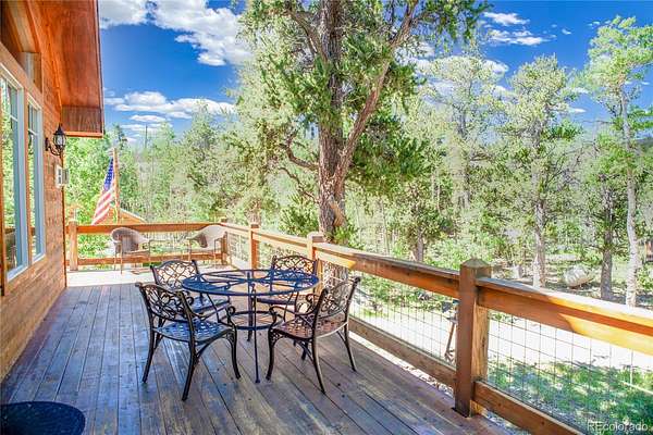 Nestled amidst a serene aspen and pine forest, this beautiful custom mountain contemporary home sits on 2.5 level acres, offering breathtaking meadow and mountain views. The property is meticulously maintained, featuring a spacious open floor plan with high-quality finishes throughout. Highlights include hardwood floors, granite countertops, tongue-and-groove vaulted ceilings, log accents, and an attached oversized two-car garage. Beyond the main garage, the home also boasts a propane-heated detached oversized two-car garage with an 11-foot ceiling and attic storage, providing ample space for all your recreational equipment and storage needs. The flowing floor plan is complemented by two natural gas fireplaces and a freestanding natural gas stove, creating a warm and inviting atmosphere. Large windows allow abundant natural light to fill the home, enhancing the tranquil setting and offering stunning views of the natural surroundings. This cabin is ideal as a peaceful retreat, primary residence, or vacation rental, featuring owner’s lock-out storage for convenience. Accessible year-round via a county-maintained primary road, this fully furnished and decorated turnkey cabin includes three bedrooms and three bathrooms. With a proven rental history, the property comfortably sleeps eight people and offers generous living space for all. The Foxtail Pines neighborhood features a community-maintained, stocked fishing pond, a picnic area, and access to extensive trail systems, Thompson Park, and National Forest land. Fairplay is perfectly located close to world-class skiing, gold medal fishing, national forest recreation, dining and seasonal cultural events. Don’t miss the opportunity to view this exceptional mountain home. Schedule a showing today to experience all that this property has to offer!