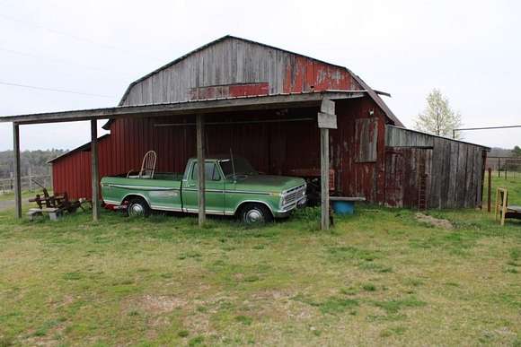 The Ole Farmstead - 175 acres of rolling ridge land with great views, 2 year-round springs, pond, pasture, wooded land, nice home, guest cabin, barn and shop!! Home has 1,948 ft main floor plus 400 ft on 2nd floor, original part built in 1926 with major renovations and additions in 2012 & 2022. Main floor includes entry area, kitchen/dine with oak cabinets & island, separate dining, family room can be a bedroom, 2nd floor has bedroom area & study or play area, large rear deck and 2 front porches. Rustic guest cabin has 1,152 ft with 2 living areas, full kitchen, 2 bedrooms, 2 baths, and terrific scenic view from back living area. 175 acres has 95 acres pasture & 80 wooded, 2 year-round springs, 1 pond, large wood barn with loft, wood frame shop building 24 x 50 ft with lean-to each side, 1 side enclosed & 1 open. Located only 4.5 miles to S. Maumee access on Buffalo River for swimming, camping, or canoeing and about 8 miles takes you to center of Marshall, county seat of Searcy County. All numbers are approximate.