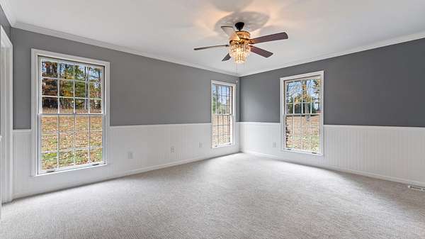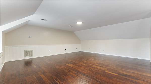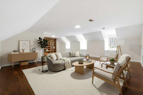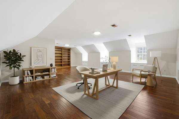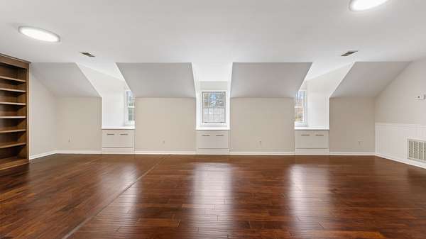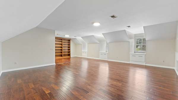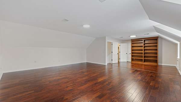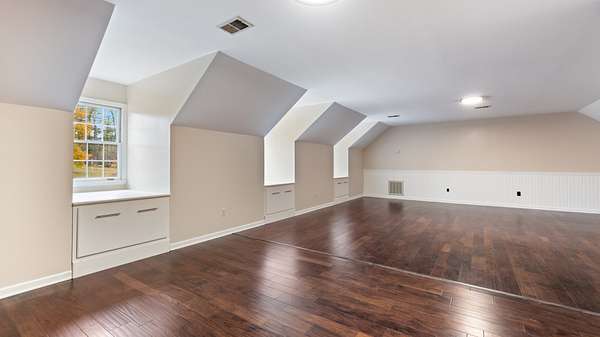 Upper level bonus area is 22x31 Sq. Ft. of multipurpose space for media room, play room, craft room etc. with a 7x8 ft. walk in closet. Also included is a walk in floored attic space with built in shelves.