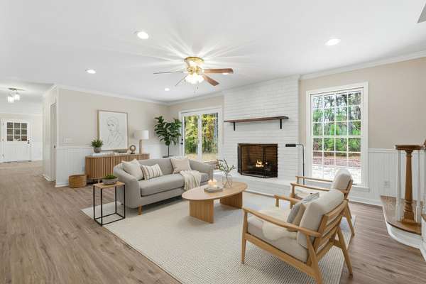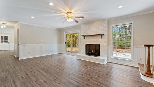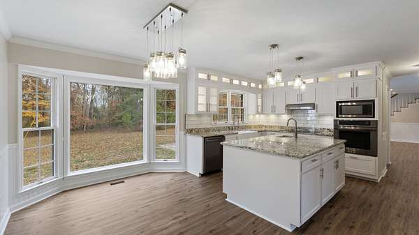 Creekside Wooded 5.40Acre Estate with a Brick 3,383sq ft 4 bedroom 2.5 bath home with an attached 2 car garage and a Brick 2 car detached garage/ workshop. Home has been recently remodeled with a new roof on home and detached garage, new interior paint, new floor coverings, and new front door. A beautiful Chefs kitchen has granite counter tops and a large granite center island as well as a large eat in dining area. Abundant cabinets feature upper lighted glass door display cabinets. All appliances include stainless Refrigerator, glass cooktop, separate oven, microwave and dishwasher. Additional living area includes a large living room /den with full brick fireplace with gas logs and separate formal dining room .Bedroom area features a large primary suite with walk in closet. Gorgeous tile bath with double sinks , oversize tile shower and separate storage closet. An additional 3 large bedrooms one with a walk in closet , an additional full bath and linen closet completes the bedroom area.