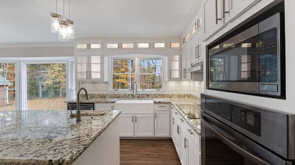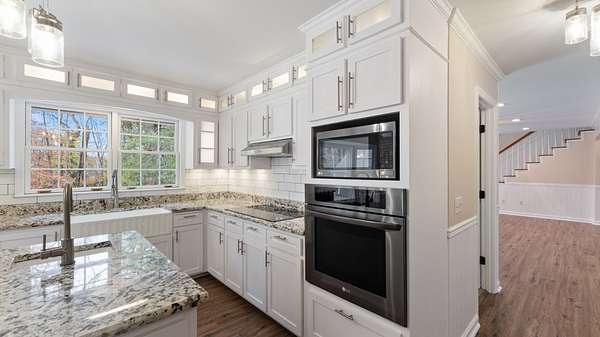 - Built-In Electric Oven, Cooktop, Dishwasher, Disposal, Microwave, Refrigerator, Stainless Steel Appliance(s)