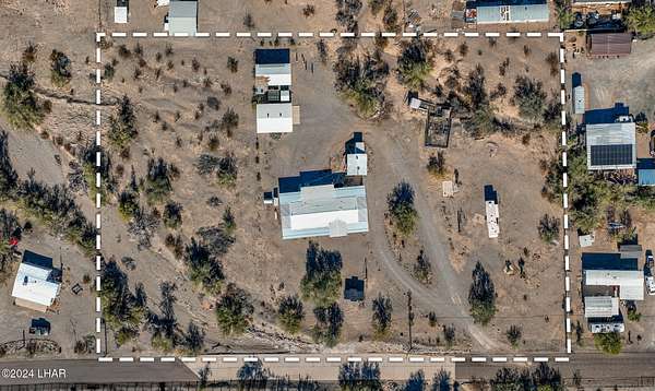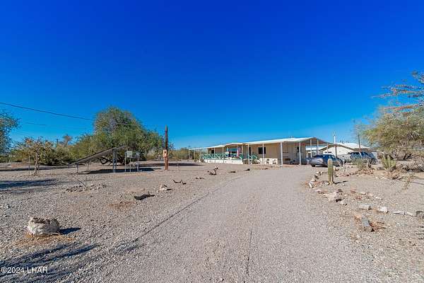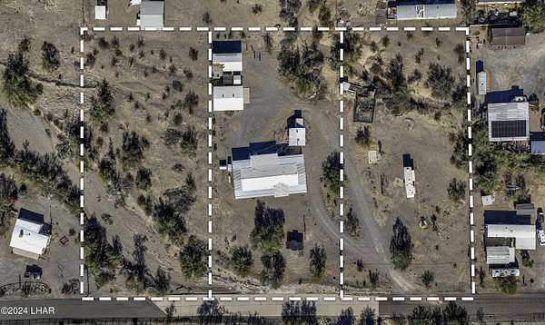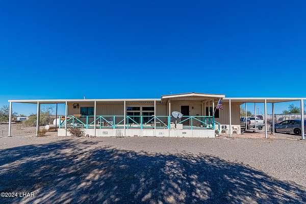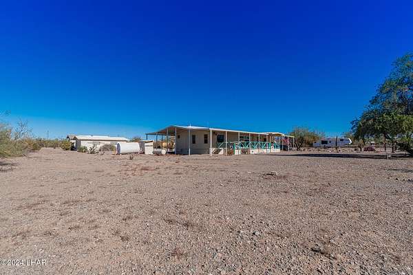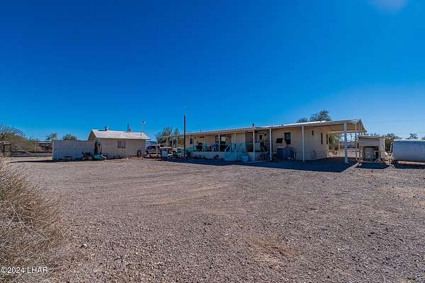 3-Acre Property with Home & Solar in Quartzsite, AZ. This expansive 3-acre property offers incredible value and endless possibilities! Featuring three separate parcels, this versatile property has 3-bedrooms, 2-baths with a spacious, open floor plan. Enjoy the benefits of solar power, keeping energy costs low, and a brand-new septic system installed in 2022. Spacious Mobile with walk-in closets and sliding doors. Large Wrap-Around Deck, perfect for relaxing and enjoying the views. Lots of space for expansion, storage, or additional development. 2-Car Garage & Multiple Sheds/Outbuildings, plenty of room for tools, equipment, or hobbies. The Greenhouse is ideal for gardening enthusiasts or sustainable living. RV Hookups & Sewer, ready for your RV, with convenient access to utilities. On city water. The home is on propane, with a newer space heater and central A/C for comfort year-round. The lot offers immense potential for further development or as a private retreat. Located just minutes from Quartzsite's amenities, this property is a rare find with solar power, ample storage, and a well-maintained home. Don't miss the opportunity to own this unique and versatile property.