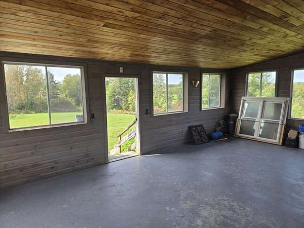 Huge 10,000+ sq ft Mixed-Use Building on 14 Acres - Caribou, ME 416 Van Buren Rd, Caribou, ME 04736 2 beds | 2 baths | Pond | Direct ATV & Snowmobile Trail Access. This is not your typical house. It's a former 1993 restaurant that I gutted and split into 3-5 solid sections on 14 private acres with a spring-fed pond and direct access to the busy ''4 Corners'' intersection on ITS 83 snowmobile/ATV trails. Residential side (~5,000 sq ft with 10 ft ceilings): Currently set up as a comfortable 2-bed, 2-bath home. Plenty of space and high ceilings -- could make this a 4 bedroom unit very easily, using the sun porch. Entertainment/bar wing (~2,500 sq ft with 25 ft vaulted ceilings): Full second kitchen, pool table, golf simulator, dart board -- ready for parties, man cave, or running a small business/events. Large loft and tons of storage area above bar. Commercial space (~2,500 sq ft with 25 ft vaulted ceilings): 12 foot ceilings inside of the 25 foot ceilings. A blank canvas with massive height and power. The 12 ft ceilings could be lowered to 8 ft to quickly add 5000 sq ft of usable area, as a second story. Or the interior walls in this section could all be removed thanks to enormous engineered scissor trusses. You'd then have roughly a 50x100 room with giant ceiling heights. Dual 200-amp electrical services Large industrial septic system (recently serviced) Well inside building