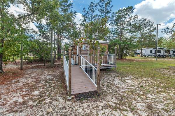 Take Hwy 90 West from DeFuniak Springs; right on Girl Scout Rd.; left onto Woodlands Blvd. Property is on the right side of the road as you approach the curve. The address is posted on the fence near the gate.