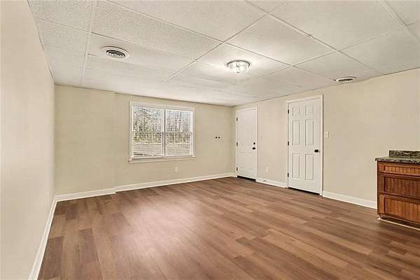 Discover the perfect blend of privacy, space, and comfort with this full-brick home nestled on 3.98 picturesque acres. A long, winding driveway lined with mature trees welcomes you, creating a serene and secluded setting tucked back from the road! On the main floor, a spacious entryway opens to a formal living room and formal dining room. This level includes three bedrooms and two full bathrooms, including a large master suite. The generous kitchen offers ample workspace and flows into a large family room with exterior access to a spacious patio, ideal for outdoor entertaining. A bright and roomy breakfast area sits just off the kitchen for everyday dining. Upstairs, you'll find a huge unfinished attic, perfect for additional storage. The property also features two seperate garage spaces with direct access to the basement, offering functionality and convenience. The expansive basement level has been updated with new flooring and fresh paint throughout and offers exceptional flexible space. This level includes multiple finished rooms that can be used as office space, hobby rooms, or additional living areas, along with a large bonus room perfect for a game room or second family room. You'll also find a full bathroom, unfinished storage, and a kitchen and dining area, providing great versatility for extended living space and the possibilities are endless! This property qualifies for up to $26,250 in down payment and closing cost assistance from Move Home Lending.