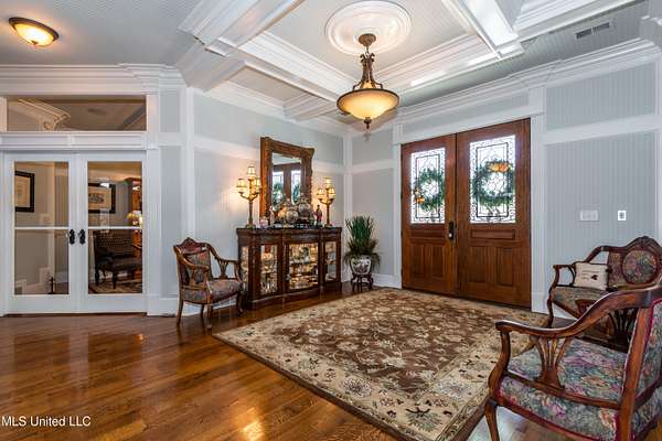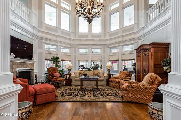 This one-of-a-kind property will truly leave you breathless with its stately beauty and elegant details. Nestled on 7.42 acres, experience private living while being mere minutes away from stores and restaurants. Besides being in the most convenient location, this home is unlike any other and features an extensive trim package. They don't build houses like this anymore! You'll also find massive closet space, a beautiful primary dressing area, covered porches and balconies with front and rear access, a screened porch with an outdoor kitchenette, an outdoor fireplace, a gunite salt water pool with a computerized self filling and draining feature, a media/screening room with a minibar, and so much more. The chef in your family will be pleased to find a Frigidaire professional built-in refrigerator, a KitchenAid Ice Maker, and a 6 burner Jenn Air gas cooktop--just a couple of the impressive features of the large kitchen. Also in the kitchen is a large dining area along with space to sit in front of the fireplace and visit--just one of many living spaces throughout the home making it the perfect space to entertain family and friends. Do you have horses? Bring them! This property features 7.42 acres already fenced-in and has a barn with electricity, a loft, concrete flooring, and sliding doors on the front and rear entrances. This home is absolutely spectacular and has so much attention to detail that words don't do it justice. Make an appointment today and prepare to be wowed!