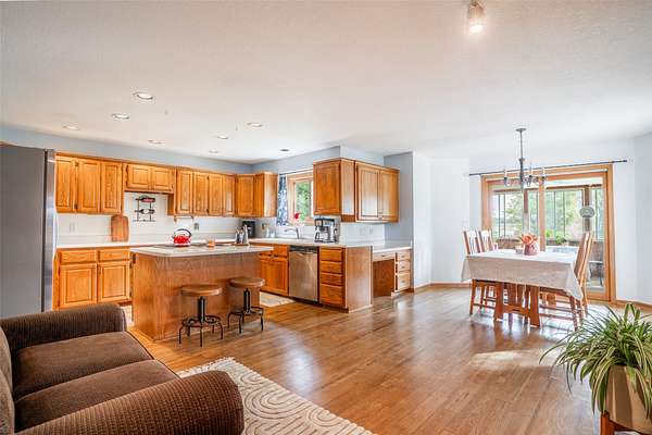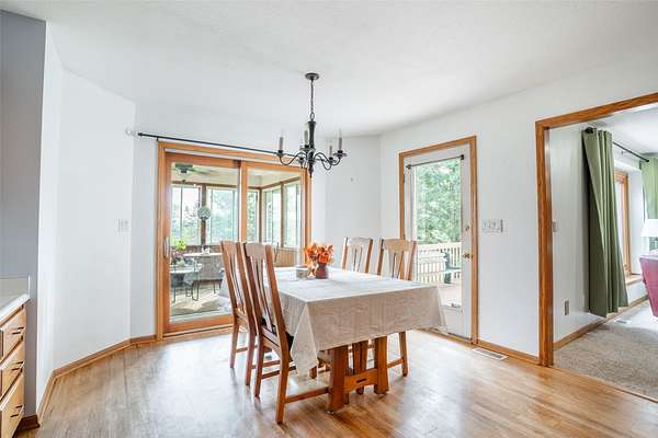 Location! Location! Location! This two story home sitting on over 2 acres offers Terrace Hill Golf Course in the western view & rolling hills of country side in the eastern view. It is the best of both worlds! Step inside to nearly 3,400 finished sqft! The great room w/large picture windows showcases a double fireplace shared w/the hearth room in the well appointed kitchen w/hardwood floors. Generous amount of cabinet/counter space & walk-in pantry keeps everything organized. All appliances are included! Enjoy meals at the island, eating area or the formal dining room. Sliders lead to the 3 seasons room w/walls of windows for incredible private views or exit through the door to the open deck for grilling w/shaded afternoons. Staircase leads up to 3 bedrooms & a huge laundry room. Wash/dryer included. The primary suite holds a private bath w/walk-in closet, soaking tub, commode room & dual vanities & shower. Guest bath is near the 2 bedrooms. Finished lower level comes w/pool table & gun safe! The hobby room could easily be a non conforming 4th bedroom. Unfinished area is perfect for storage w/egress window for future finish. The attached 3 car and detached 2 car garage give plenty of space for hobbies! The gorgeous mature trees & landscaped yard changes with the seasons and NEW leaf guards to protect the gutters! Bus stop is nearby for SEPolk Schools. Many upgrades inside and out could be your next Home Sweet Home!