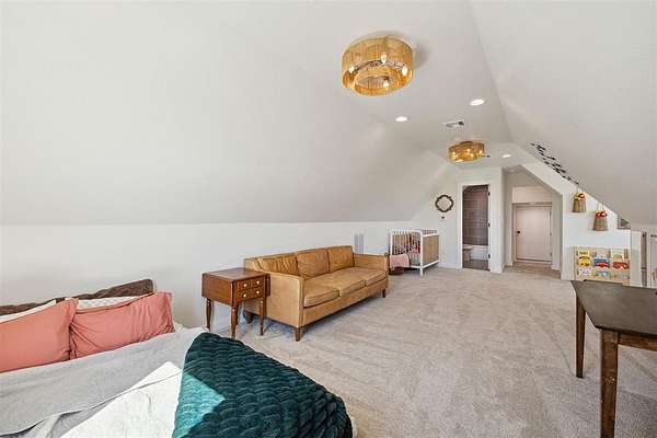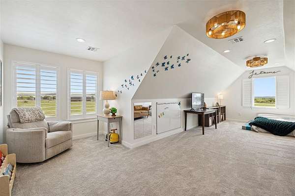 This exceptional 4 bedroom, 3.5 bath home features a versatile upstairs bonus area, oversized garage with storm shelter, and a stunning butler's pantry. The open floor plan showcases beautiful, large windows with remote-controlled treatments in the living and dining areas fill the home with natural light while maintaining privacy.