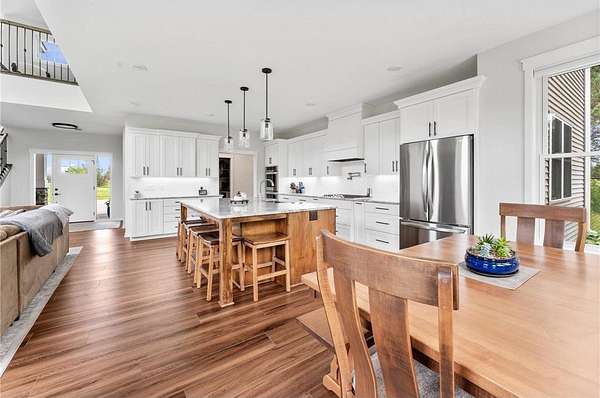 Absolutely stunning custom home with all the upgraded features you would expect and more! This luxury home sits on 10 beautiful acres and features 9 foot walls, huge craftsman kitchen with granite countertops, top of the line appliances, double oven, stovetop pot filler, top of the line cabinetry with deep pot drawers, utensil pull outs, farm sink and more. Just off the kitchen is the great room with the towering ceiling and open concept, that is perfect for entertaining and large gatherings. Beautiful main level owners suite has a tray ceiling, attached bath with a spacious walk in shower and huge walk in closet. The heated attached garage is finished off and has tons of room for all your things. The fenced in yard, fire pit with landscape rock and newly planted maple trees are all set and ready to be enjoyed. The location is also ideal, just off the blacktop road, right by the Little Walleye Landing to the Snake River and less than 5 minutes to the Pokegama Lake boat launch.!