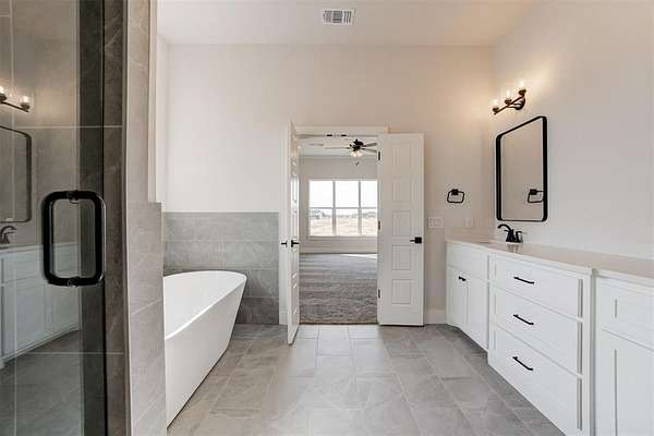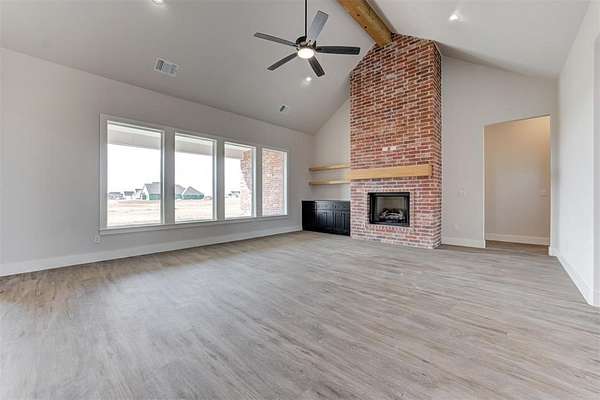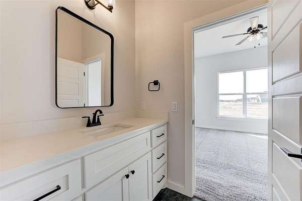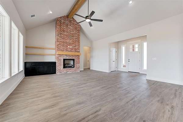 Take advantage of $10,000 in builder incentives toward closing costs or concessions! Experience the perfect blend of luxury and country living in this stunning modern farmhouse on 2.48 acres. The open-concept interior is flooded with natural light, featuring a spacious living area and a gourmet kitchen equipped with quartz countertops, soft-close cabinets, a center island, and a walk-in pantry. A dedicated home office provides the ideal workspace, while the mudroom offers functional built-in storage. The private primary suite features a spa-like bath with a soaking tub, walk-in shower, and a large closet that conveniently connects directly to the laundry room. Two additional bedrooms share a functional Jack-and-Jill bathroom. Outside, enjoy a covered back patio with a propane hookup and a spacious three-car garage. Built for efficiency with quality windows and insulation, this home is move-in ready.