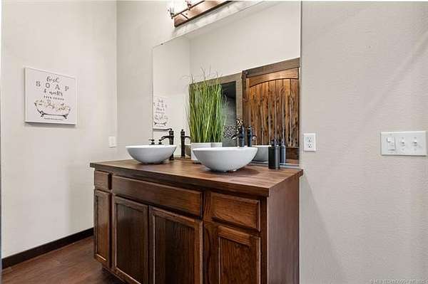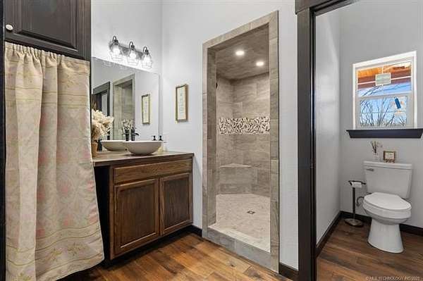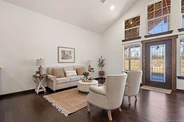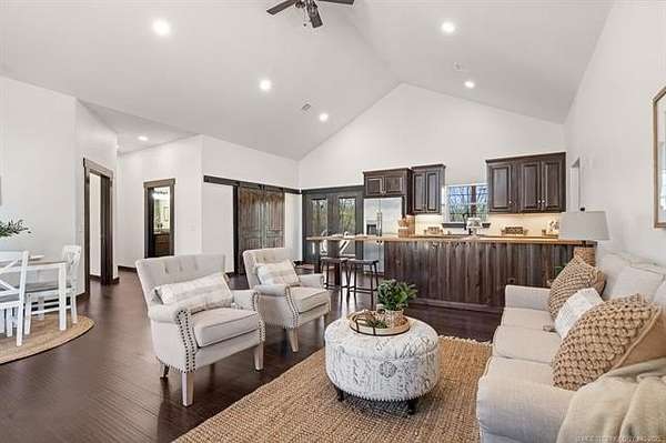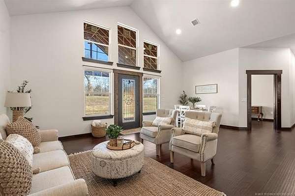 Discover this 2024 custom home on 43.35 peaceful acres in the Dickson School District, just minutes from Lake Murray. Newly built on its original foundation, it offers 3 bedrooms plus an office, 2 baths, and hard-surface flooring throughout. The open kitchen features custom cabinetry, a large island, and a walk-in pantry with a farmhouse barn door. The living area includes tray ceilings and double-pane windows for great natural light. The primary suite has an oversized tiled walk-in shower and generous closet space. The large mud/laundry room adds excellent storage. The home also includes blown-in insulation for efficiency. Enjoy a covered front porch with stone accents and stained concrete, plus a spacious covered back porch. A storm cellar and a concrete pad for a future garage are already in place. A major bonus is the 40x60 insulated, spray-foamed shop with three overhead doors, bathroom plumbing stubbed in, and a water line run. The acreage features meadows, mature pecan and native trees, and four ponds. There are two water wells, a water softener, and existing utility connections from a previous mobile home-making it easy to add another home if desired. The property is fenced, outside city limits, and offers ATV and walking trails throughout.