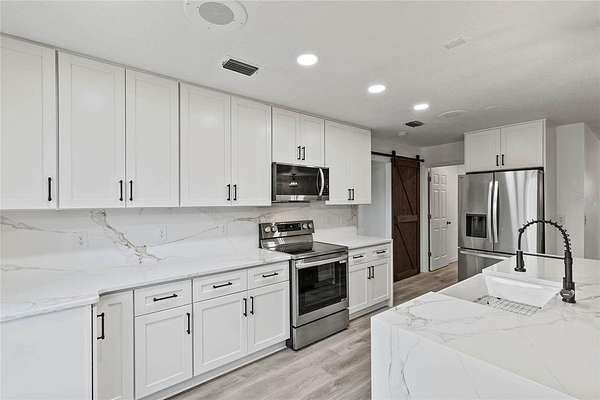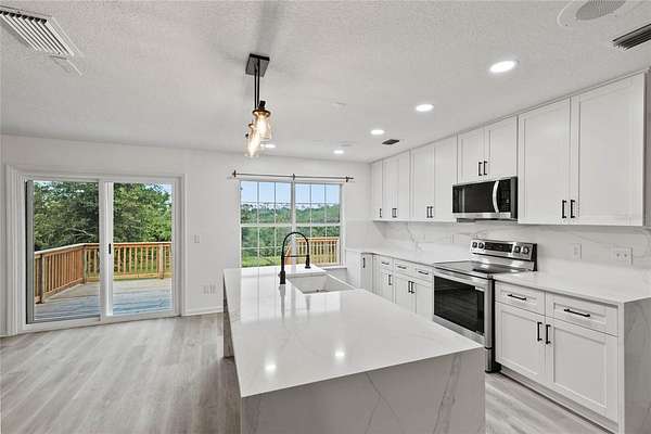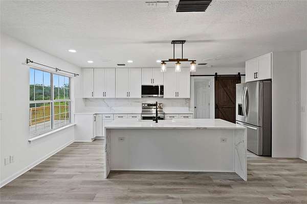 One or more photo(s) has been virtually staged. This custom-built, original owner homestead is a rare find - perfectly blending modern upgrades with serene country living. Fully remodeled, this 4 bedroom, 3 bath home on 7.4 acres features brand new luxury vinyl plank flooring, a gorgeous chef's kitchen with a quartz waterfall island, soft-close cabinetry, stainless steel appliances and a double farmhouse sink. If entertaining family and friends is what you love, the adjacent pantry includes a sink and plenty of counter space for food prep if needed. With the open concept living areas including a wood burning fireplace and the huge deck overlooking the peaceful wooded surrounding area, there is plenty of room to relax and/or entertain. All bathrooms have been tastefully updated with quartz vanities and new fixtures. The large 4th bedroom lends itself to many options - be it a mother-in-law suite with a full kitchen or a large media room or your older teen's special place. Equestrian or outdoor enthusiasts will love the two story barn, offering three 12 X 12 horse stalls, a spacious loft, multiple storage areas, workshop and large equipment bay with 12 inch concrete flooring. The property is partially fenced with three separate paddocks. The property also includes a full RV hook up site and a separate shed for more storage. Additional features include a 50 year shingle roof (2008), two newer HVAC units (2021) with dual zone controls and transferable warranty, new water heater (2025), a 24 X 24 drive through garage with full attic storage. With ample space, privacy and high end upgrades throughout, this one of a kind property is ideal for those seeking a turnkey homestead, hobby farm or equestrian retreat. All within minutes of dining, shopping and entertainment venues. Schedule your private showing today and experience all this exceptional estate has to offer!