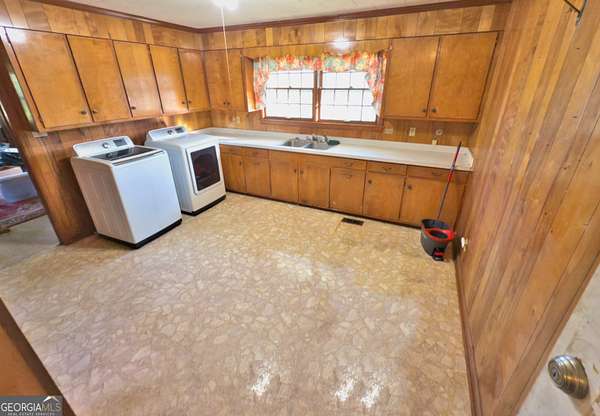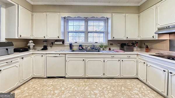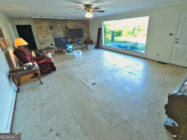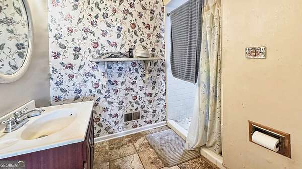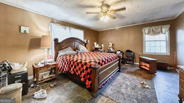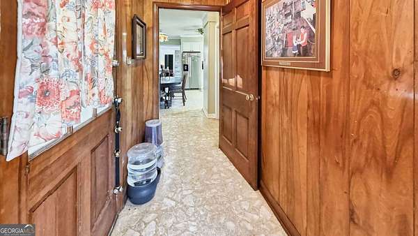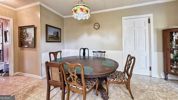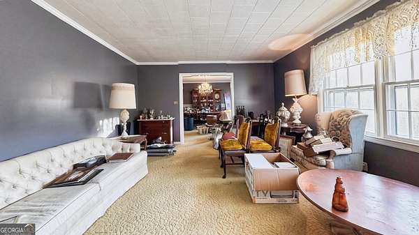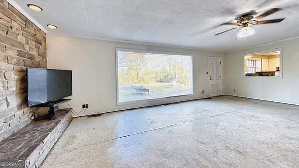 A classic 4-side brick ranch on 36 acres, 4164 Perry Rd is about a mile south of Hagan in Evans County with a mix of open pasture and woods, a meandering stream, and paved road access. Public records indicate approx. 3,975 sq ft on one level with 4 bedrooms and 4 full baths, including two en-suite bedrooms. The oversized country kitchen offers space for a breakfast area and a deep walk-in pantry with built-ins; a swinging door connects to the formal dining room that flows to the living room and foyer for easy circulation and hosting. The kitchen also opens to a rear family room highlighted by a brick fireplace and a wide picture window framing backyard views; from here, step onto a large concrete patio for outdoor dining. A central hallway leads to a spacious bedroom wing. The primary suite features two closets and a bath with dual vanities, a walk-in shower, a soaking tub, and ceramic tile finishes; a secondary bedroom offers its own full ceramic-tiled bath plus a built-in desk/vanity niche. Near the attached entry, a versatile laundry/second-kitchen/bonus zone sits adjacent to another full bath and an oversized bonus/studio that could serve many uses (buyer to verify). Parking includes an attached two-space carport plus off-street parking. Whole-house HVAC and two tank water heaters noted; no HOA reported. Condition noted as fixer/needs updating-bring your vision to elevate solid mid-century bones on an acreage homesite convenient to Claxton, Statesboro, Metter, Savannah, Fort Stewart, GA-280, and I-16 (times/distances approximate). Mapping/GIS layers are for orientation only and may indicate portions of the tract intersect flood-mapped areas; buyers should consult surveyors/engineers and insurers. Information deemed reliable but not guaranteed; buyers to independently verify acreage, square footage, utilities (well/septic), internet availability, zoning/uses, schools, taxes, and flood status. Full Matterport 3D tour available (Virtual Tour). Listed by Weichert, Realtors - Webb & Associates. Each Weichert franchised office is independently owned and operated. Equal Housing Opportunity.