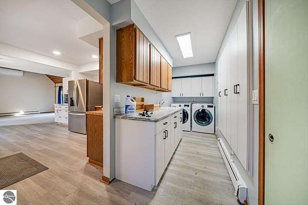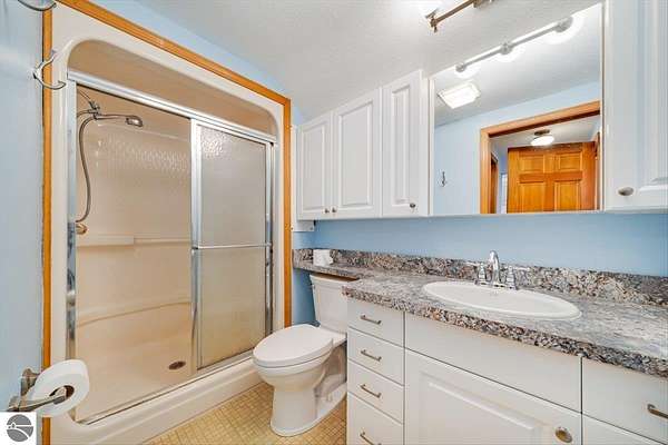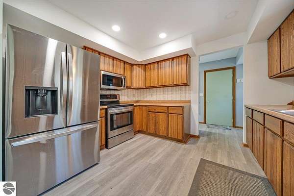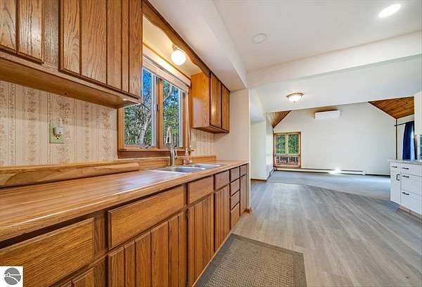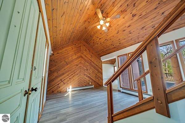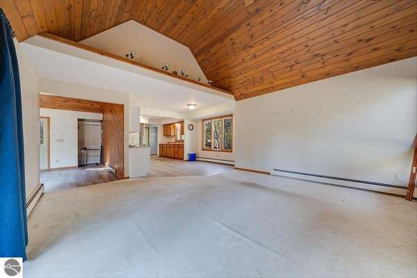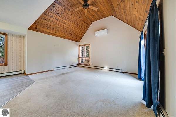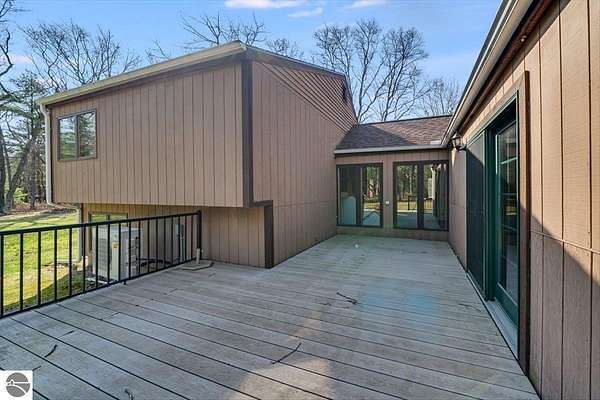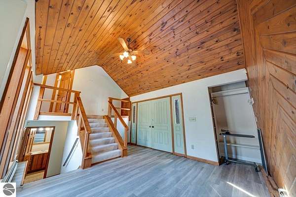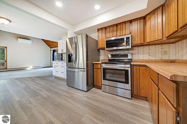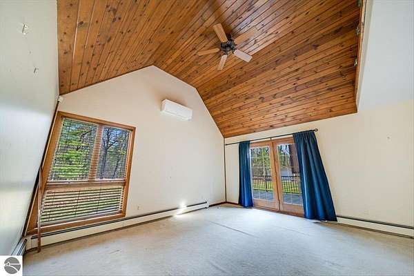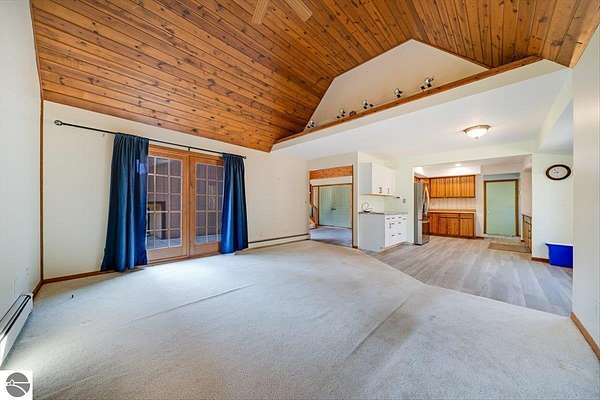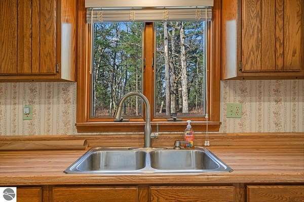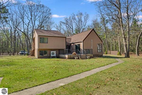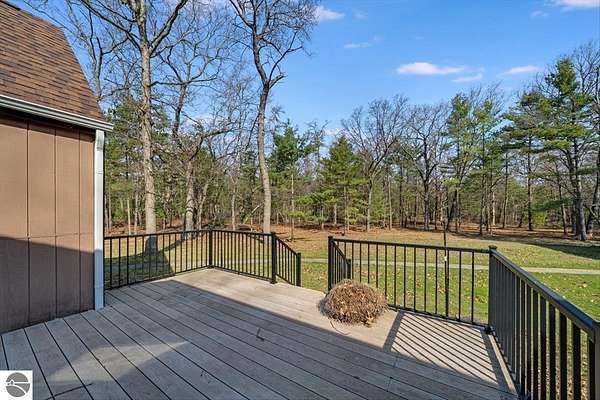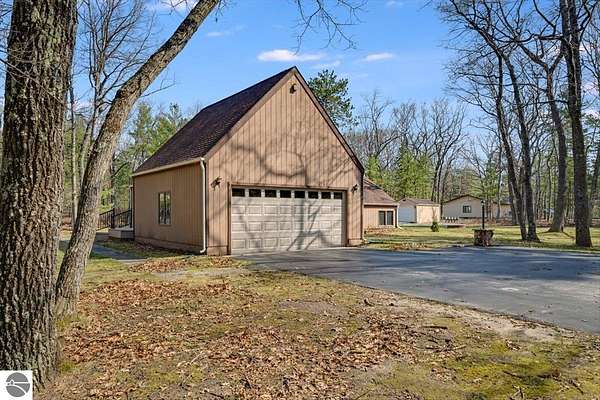 This home sits on nearly 4 wooded acres. Pull up on a black top drive to a 3bd/2bth home, 2 car outbuilding/workshop, and shed. This tri-level offers views from every room. The upper level hosts a primary suite with walk-in closet and private balcony. The kitchen has some updates including laminate vinyl flooring, newer appliances, and some new cabinets. The laundry room is updated and conveniently located just off of the attached garage entry. An additional gravel drive leads right up to a port where you can pull your boat, trailer, or toys easily in and out. Van Ettan Lake can be seen from the end of the driveway, and public accesses are nearby.