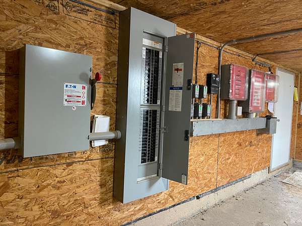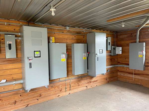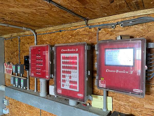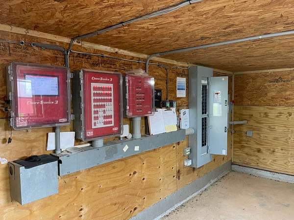 The poultry houses are equipped with Chore-Tronics 3 controllers for precise climate and flock management, ChoreTime C2 Plus feeders for efficient feeding, and Ziggity drinkers. Cadiant brooders provide optimal bird comfort, and LED lights with dimmers improve energy efficiency. Ventilation is supported by stir fans and tunnel doors. An alarm system provides added biosecurity and monitoring. Water is supplied by three wells, and the farm features a 30,000-gallon propane tank and a diesel generator for backup power.
