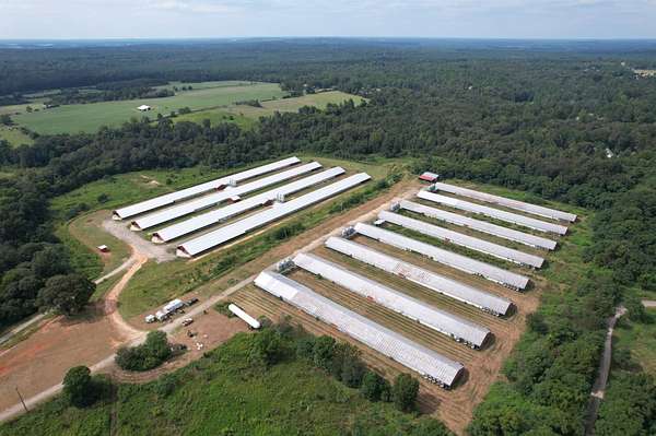 Breezy Bottom Farm is a modern, four-house mega broiler poultry farm located in Crawford County, Georgia, near Roberta. Built in 2019, each of the four 45x600 poultry houses offers high-capacity production, raising a 35-day bird for Perdue on a 5.5 flocks-per-year schedule. With a projected gross income of $286,000, this operation is turnkey and income-producing. The farm spans 80+/- acres and includes a designated homesite, ready for future development.