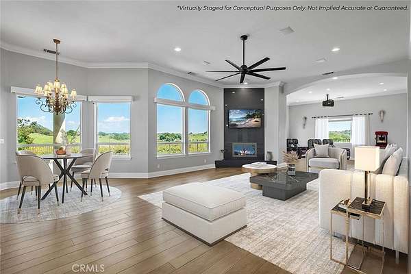 EXPERIENCE EXTREME PRIVACY, SOUNDS OF NATURE & STUNNING VIEWS ON THIS 8.6-ACRE ESTATE SURROUNDED BY NATURE CONSERVANCY! In Tenaja on the Santa Rosa Plateau, this estate sits at the end of a gated cul de sac with an abundance of fenced, usable land for horses, agriculture, future development of a guest home, ADU, barn, arena, pond...A majestic ancient oak forest compliments the natural environment, topped by stunning views of the Santa Rosa Plateau Ecological Reserve and direct trail access, providing a rare combination of living in the middle of a natural wonderland, while being only 10 minutes' drive to the conveniences of town. This is a unique opportunity with acres of usable land and a pristine, newly refurbished mostly single-story 4867 square-foot luxury estate with beautiful views, 4 bedrooms plus media room/office downstairs, 5-car garage, paid-for 44-panel ground-mount solar system, high-efficiency heat pumps, solar-thermal heated pool, and an "Eagles Nest" 2nd-story loft with balcony overlooking your property. The entire home has been meticulously renovated with the latest on-trend, high-quality appointments, including custom ? inch Michigan Cherrywood floors, 2ft x 4ft flooring tiles, quartz counters, all-new cabinetry, appliances, HVAC, front door, designer plumbing fixtures, electric blinds, high ceilings, 8-ft interior doors and, open to the kitchen, a grand great room with media alcove & forever views. This estate offers the ability to build future structures, complete privacy and is extremely convenient to freeways & amenities. It is surrounded by nature, has both mature trees & large pastures, is updated & turnkey, and sits in a lovely part of Tenaja with a security gate at the entrance to the private cul de sac. You may also install a private water well to green up the pastures to your heart's desire. The adjacent 8-acre parcel by the same owner is available (APN 931380007). Make an appointment today to experience this masterpiece! ***LA CRESTA & THE SANTA ROSA PLATEAU: 5-ac minimum parcels, minutes to schools, restaurants, hospitals, shopping, 15 Fwy & Temecula Wine Country. Enjoy this peaceful ranch community w/no commercial businesses, robust social activities, miles of private community trails & 1000s of acres of Ecological Reserve...All less than 1.5 hours from LA, SD, OC, Palm Springs & Big Bear. Discover the country, yet convenient, lifestyle of La Cresta, Tenaja & the Communities of the Santa Rosa Plateau!