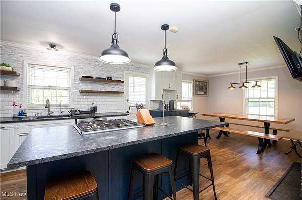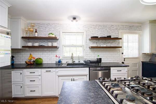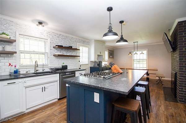 Welcome to your dream home in the heart of Canfield Ohio! This stunning 5-bedroom, 3.5-bath charmer offers an expansive 3,469 square feet of Masterfully updated living space, nestled on a serene 3-acre lot. With a perfect blend of modern updates & timeless charm, this home has everything you've been searching for & more. As you approach you'll view the meticulously maintained exterior & oversized 3-car attached heated garage, providing ample space for vehicles, storage, or even a workshop. The heart of the home is a massive great room designed with entertaining in mind, whether you're hosting large gatherings or enjoying cozy family nights, this impressive space offers endless versatility & comfort. The newly remodeled kitchen is a true showstopper, featuring high-end finishes, updated cabinetry, stylish granite countertops, stainless steel appliances, & a spacious layout that will please any home chef. Just off the kitchen, the updated dining room is perfect for large family dinners or holiday gatherings, with a double sided fireplace, the ambiance can be maximized. One of the standout features of this home is the newly added first-floor master suite. Thoughtfully designed with luxury & privacy in mind, this retreat includes a comfy bedroom, a massive & gorgeous Master Bathroom, showcasing a double shower, soaking tub, heated floors & double vanity. Lastly the massive walk-in closet is the envy of most. The first floor also features a large living room with flexibility to be used as you please, office, playroom, workout area, you name it. Connected is the 1st floor laundry with All-In-One State of the art Washer Dryer Unit, & half bath. Upstairs, you'll find four bedrooms & two full bathrooms. Other updates include a brand-new septic system (25), water treatment system (22), dry well & french drains (24), Vinyl flooring throughout 1st floor, new light fixtures & painting throughout. Don't miss your opportunity to own this beautifully updated home in Canfield today!