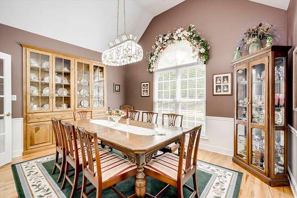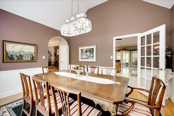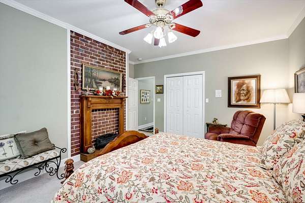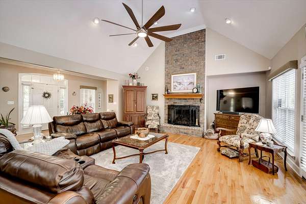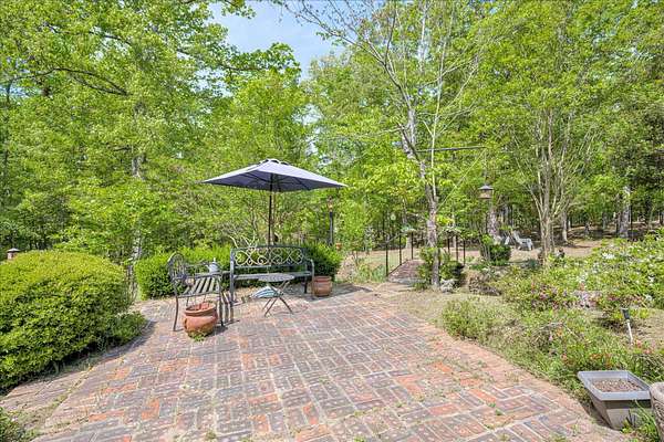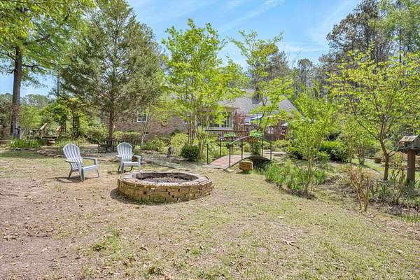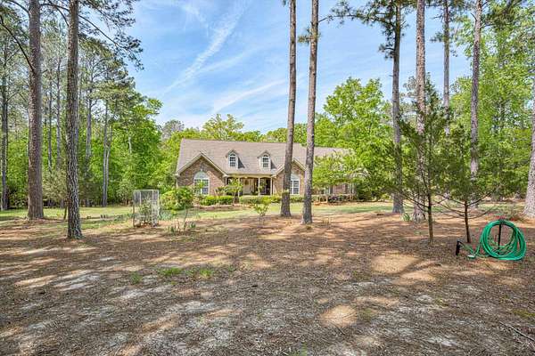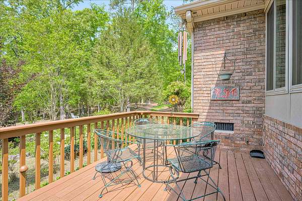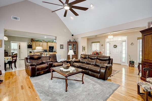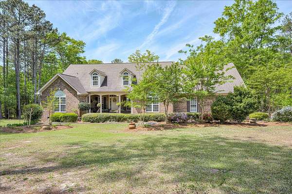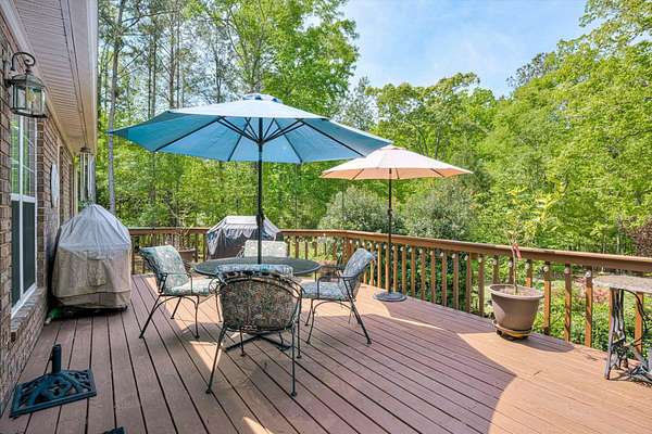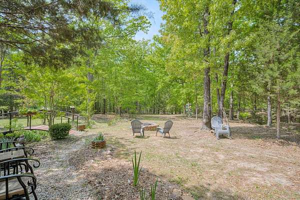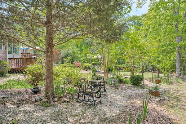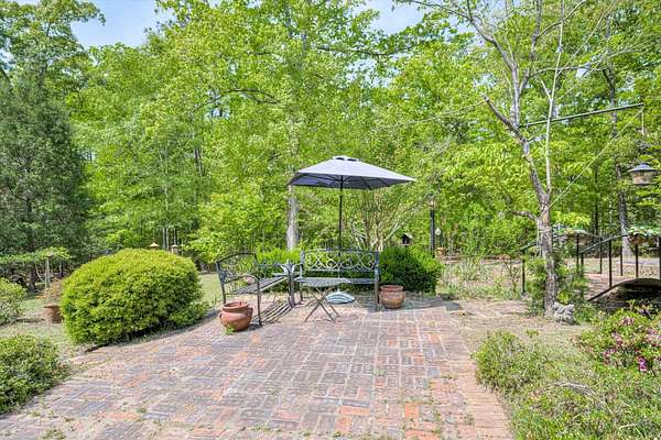 Winding paved driveways leads to your private retreat. Spectacular home on 3 acres backing up to corp property! NO HOA! Southern front porch welcomes you to this stunning ranch featuring 3 bedrooms and 2.5 baths. Oversized foyer w/hardwood floors opens to great room w/hardwood flooring, vaulted ceiling, 2-story brick fireplace and brick hearth and access to deck and enclosed porch. Owner bedroom w/hardwood flooring, trey ceiling and french doors to enclosed porch. Owner bathroom re-modeled featuring free- standing tub, lovely tile floors, zero entry tile shower w/multiple showerheads and double vanities w/quartz counters. Kitchen with beautiful wood cabinets, granite countertops, wall oven and microwave. Large breakfast area overlooking backyard and enclosed porch. Formal dining room w/vaulted ceiling, built in china cabinet and hardwood flooring. Large laundry w/extra cabinets, folding area and utility sink. Two secondary bedrooms are very good sized with ample storage. Smooth ceilings throughout. Don't miss the walk up attic space that is large enough for all your storage needs or as a future project (19x24). Outside is a landscapers delight featuring two decks (upper deck is 14x28) and lower deck (14x10), brick pathways, trellis', and a charming bridge. Oversized side entry double car garage and an additional metal outbuilding w/power (21 x 18).
