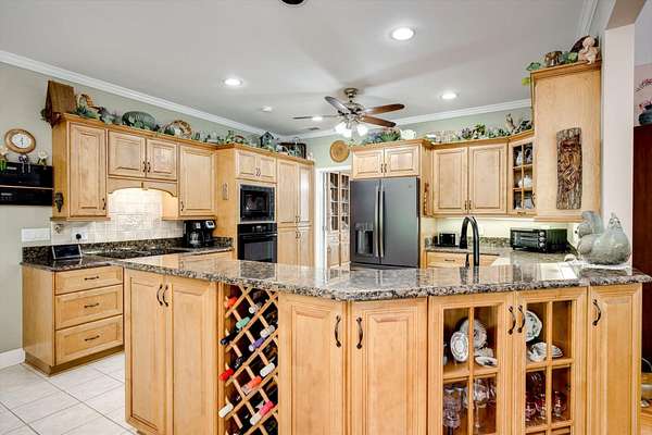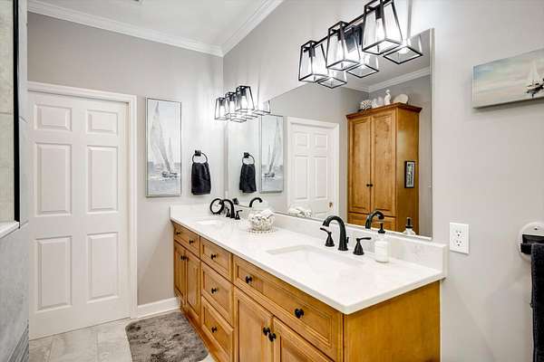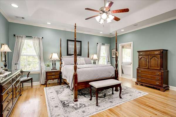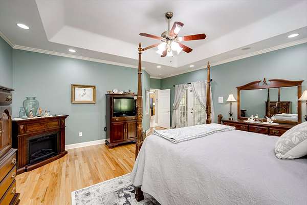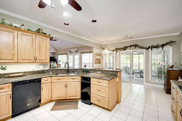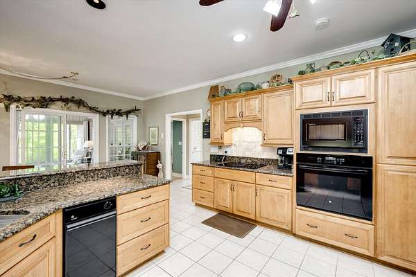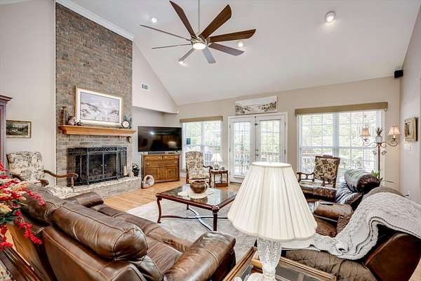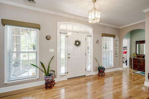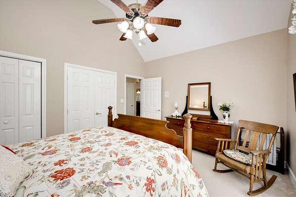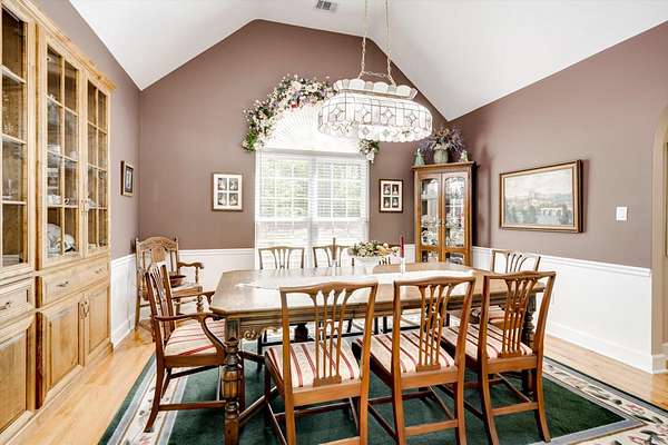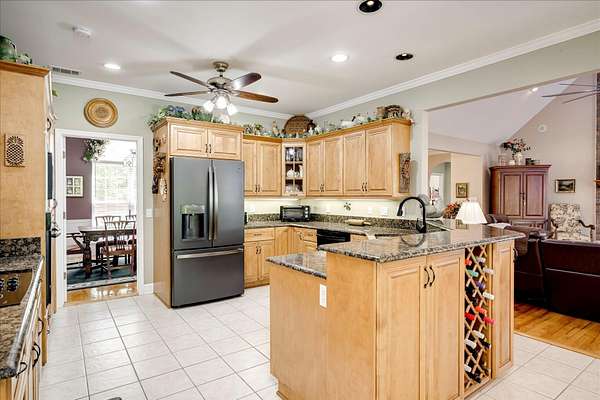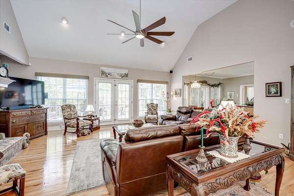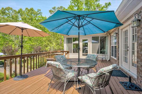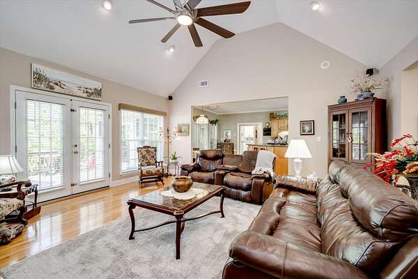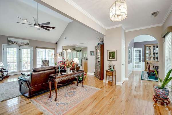 Winding paved driveways leads to your private retreat. Spectacular home on 3 acres backing up to corp property! NO HOA! Southern front porch welcomes you to this stunning ranch featuring 3 bedrooms and 2.5 baths. Oversized foyer w/hardwood floors opens to great room w/hardwood flooring, vaulted ceiling, 2-story brick fireplace and brick hearth and access to deck and enclosed porch. Owner bedroom w/hardwood flooring, trey ceiling and french doors to enclosed porch. Owner bathroom re-modeled featuring free- standing tub, lovely tile floors, zero entry tile shower w/multiple showerheads and double vanities w/quartz counters. Kitchen with beautiful wood cabinets, granite countertops, wall oven and microwave. Large breakfast area overlooking backyard and enclosed porch. Formal dining room w/vaulted ceiling, built in china cabinet and hardwood flooring. Large laundry w/extra cabinets, folding area and utility sink. Two secondary bedrooms are very good sized with ample storage. Smooth ceilings throughout. Don't miss the walk up attic space that is large enough for all your storage needs or as a future project (19x24). Outside is a landscapers delight featuring two decks (upper deck is 14x28) and lower deck (14x10), brick pathways, trellis', and a charming bridge. Oversized side entry double car garage and an additional metal outbuilding w/power (21 x 18).