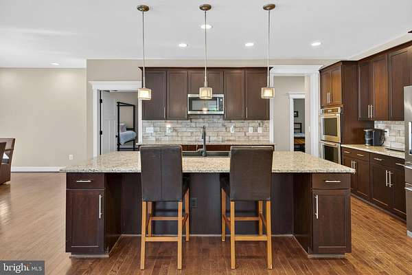 Welcome to a home that feels like a retreat every day. Built in 2017 and lovingly maintained by its original owner, this Craftsman-style Evergreene Homes residence offers the ease of main level living with three bedrooms plus a dedicated office, all on the main floor, along with the convenience of a low-maintenance exterior. Perfectly sited at the end of a quiet cul-de-sac, it sits on a serene 3-acre, partially wooded lot in Leesburg with seasonal views of Sugarloaf Mountain that bring beauty year-round. The open floor plan creates effortless flow, with sun-filled spaces connecting the gourmet kitchen, great room, and outdoor living areas. The fully finished lower level expands your living space with a spacious recreation and family room, plus a private fourth bedroom with ensuite bath-ideal for guests. Outside, the fenced yard provides a safe and welcoming space for children and pets while you relax and take in the natural surroundings. Whether gathering with friends, savoring a quiet morning coffee, or watching the seasons change from your deck, this home combines warmth, style, and comfort. All just minutes from downtown Leesburg's shops, dining, and wineries-yet a world away from the rush.