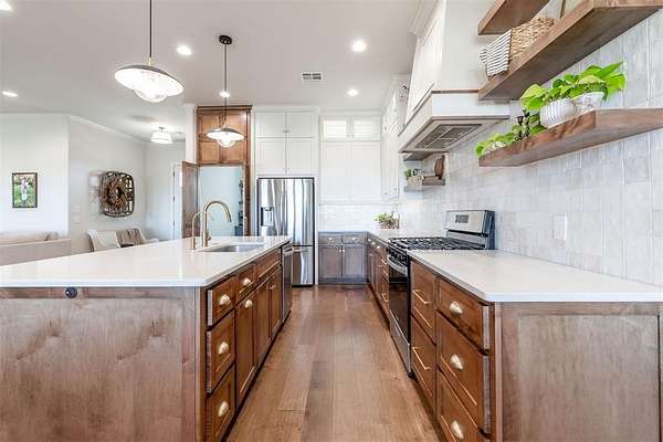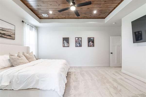 From the moment you arrive, the curb appeal sets the tone - cedar accents, a large covered front porch, and the peaceful setting of just over 2 acres (mol) create a true "room to breathe" lifestyle in Piedmont Schools, with space for a shop and additional greenspace beside the property. Inside, you're welcomed by light-grain hardwood floors, 10ft ceilings, and an open layout that feels both comfortable and elegant. The kitchen serves as the heart of the home, featuring premium quartz countertops, stainless steel appliances, and a charming hidden butler's pantry that adds both personality and practical storage. The primary suite offers a beautiful wood featured ceiling, complete with a freestanding soaking tub, a custom floor-to-ceiling tiled shower, and a well thought out walk-in closet with access to utility room. Secondary bedrooms are generously sized, and the upstairs bonus room with a full bathroom creates flexible space for a game room, guest suite, or home office. Outside, the oversized three car garage with 8ft doors provides plenty of room for vehicles and hobbies, with recent seller updates including a whole-house water softener. The neighborhood features a beautiful 20-acre common area and a 2-acre pond, giving you the feel of country living while still being part of a community. Last but not least, this home is located in top rated Piedmont Public Schools. Schedule your showing and come experience the space, comfort, and quality this property offers today!