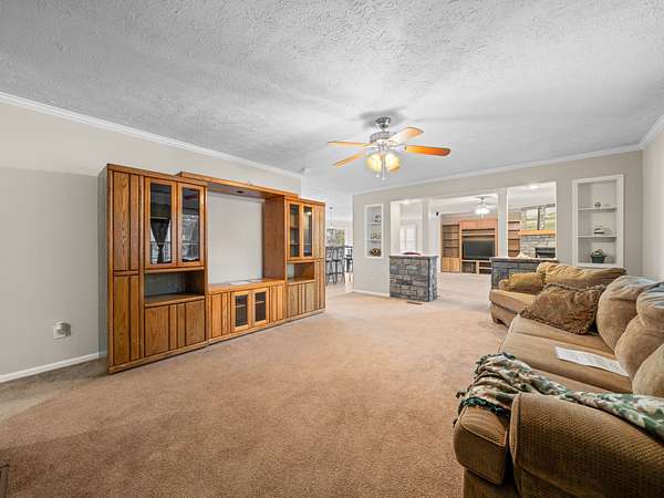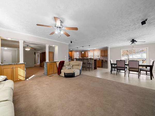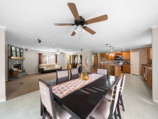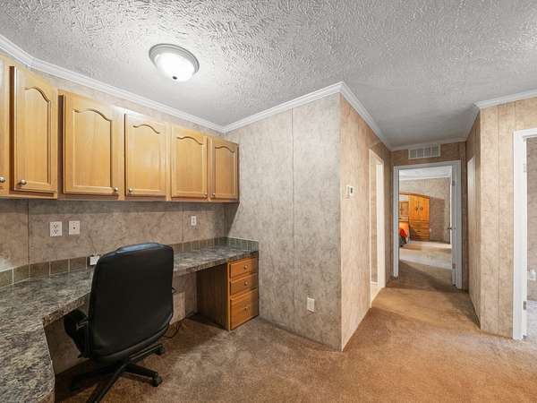 Inside, the open-concept kitchen, dining, and living area is perfect for gathering with family or friends, while the formal living room offers a quieter space to unwind. Three bedrooms and two full baths provide plenty of room, and the built-in office area makes working or studying from home simple and convenient.