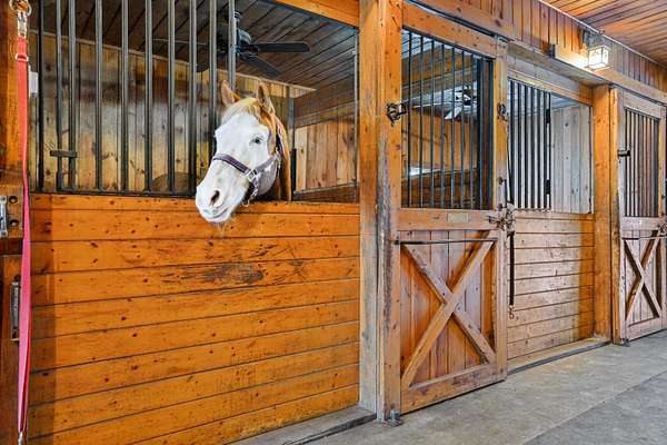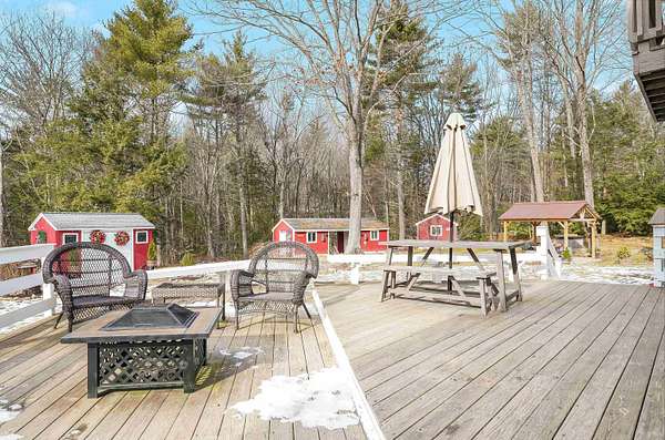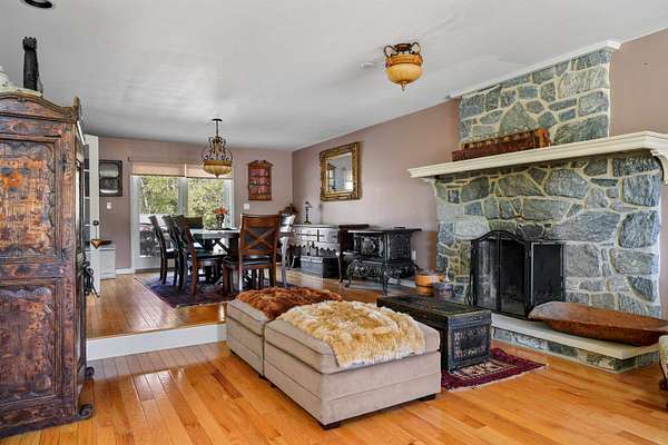 Turnkey 4,300+ sq. ft. contemporary estate with a heated 8+ stall barn set on 10 private acres. The interior features a dramatic two-story entryway leading to a light-filled floor plan. The step-down living room is anchored by hardwood flooring and a wood-burning fireplace with a granite surround. The kitchen includes updated appliances, a new walk-in pantry, and sliders to an expansive deck with dual staircases to the backyard. A dining room, sunroom with pastoral views, family room, guest room, and laundry-equipped half bath complete the first floor. On the second level, the primary suite offers a private balcony, sitting area, custom wardrobe, and a full bath with a jetted tub and new double vanity. Two additional bedrooms share a Jack-and-Jill bath and one has a private balcony. A partially finished basement provides space for guests or a home gym. The property includes a heated two-car garage with a workshop and a refurbished barn with grain and tack rooms. Equestrians will enjoy fenced paddocks, an outdoor arena, and miles of private riding trails and direct access to 20+ miles of trails across thousands of acres of public land. A new, professionally engineered bridge crosses a brook leading to a horse run-in. The grounds feature a furnished off-grid cabin with a private bath, two gazebos, two stone fire pits, and an outdoor hot tub. Recent upgrades include a new roof, well pump, water filtration, and hot water heater, plus a generator hook-up and whole-house AC. This estate offers complete privacy with no visible neighbors, yet remains an easy commute to Concord, Manchester, Portsmouth, and Boston.
