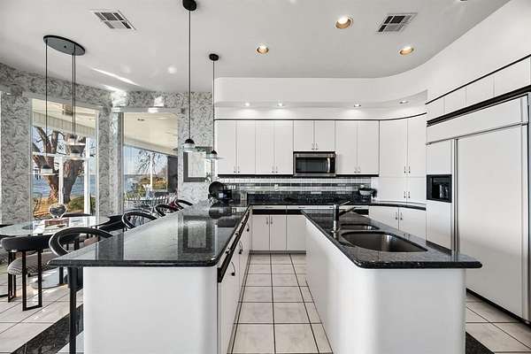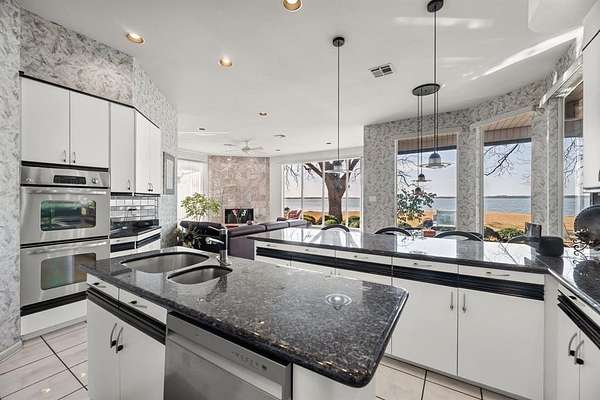 Inside, the home features 5 bedrooms and 4 bathrooms, including a thoughtfully designed mother-in-law suite with its own kitchen, living room, and both attached and private exterior entrances--perfect for multigenerational living or hosting guests who want their own space. This single level home offers 2 living area and two dining spaces and plenty of room to spread out and find your own peace and quiet. The 600-square-foot, fully glassed-in sunroom puts the lake on full display with wall-to-wall lake views making every season feel like the best seat in the house.
