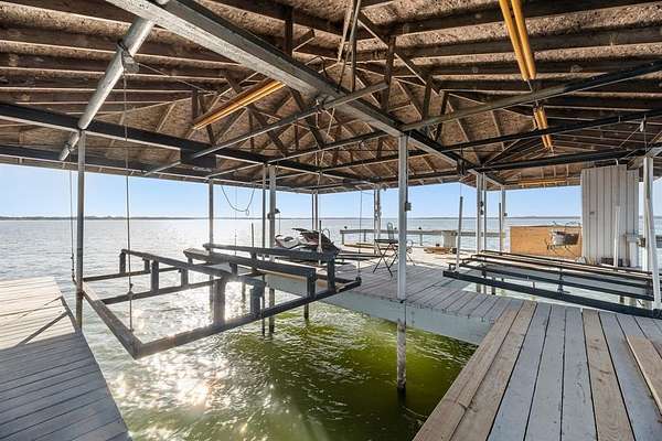 Outdoors, the amenities continue to impress. There's a private boathouse with both boat and jet ski lifts, a detached oversized 3-car garage, and a separate 340 sqft workshop complete with a carport that can accommodate two vehicles or covered boat storage. With its own private lake front deck, this space could be converted to a guest house or amazing pool house! Towering pecan trees provide beautiful shade and add to the sense of history and serenity that surrounds the property. While access to the peninsula is through the Chambers Point subdivision, this property is not subject to HOA restrictions, offering a rare combination of privacy, flexibility, and gated security. This isn't just a lake house--it's a legacy property. Private, expansive, and surrounded by water in a way that's nearly impossible to replicate, this lake retreat is designed for those who want space, views, and freedom to truly live the lake life.