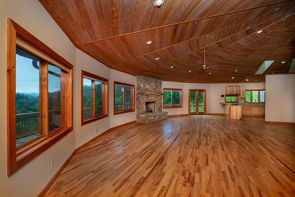 Sylva: Hwy 74 East for 4 Miles, Take left onto Skyland Dr with immediate right onto Willets Rd for .6 of a mile, Take right onto Dark Ridge Rd for a little over a mile and then right onto Lick Log Rd, Take first right onto Quiet Forest Ln. Near very top, take right at the Sundog Realty Sign.