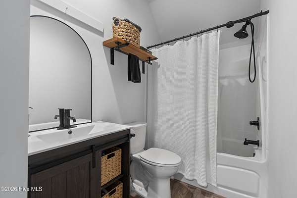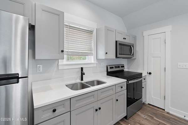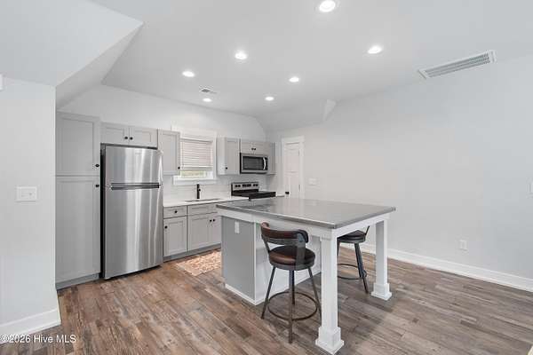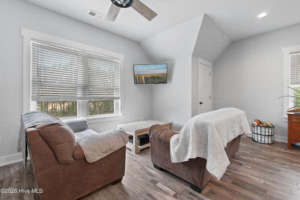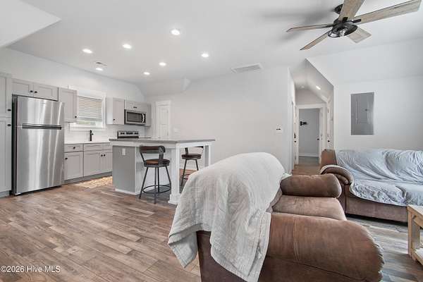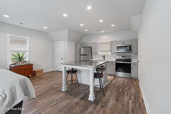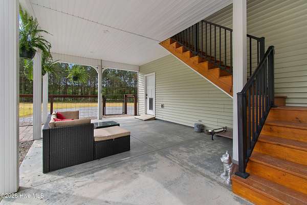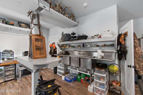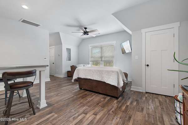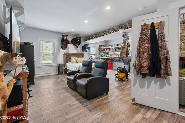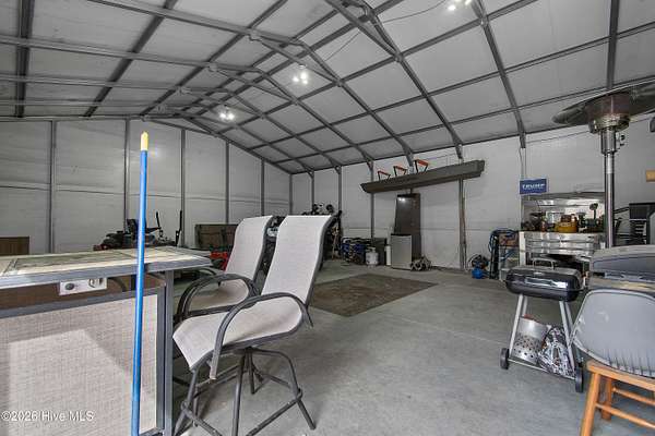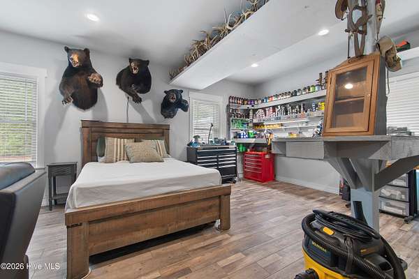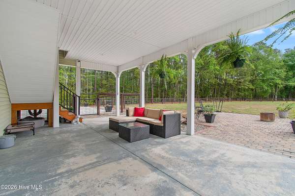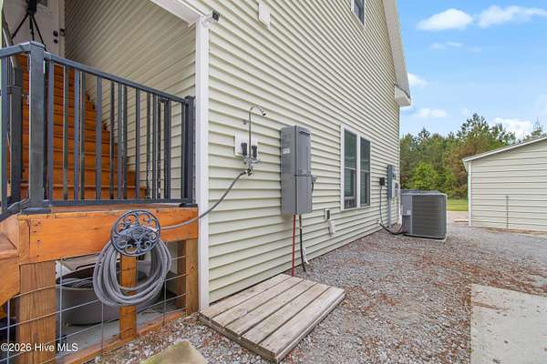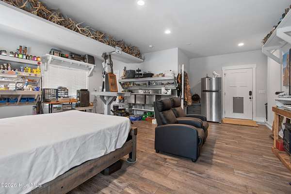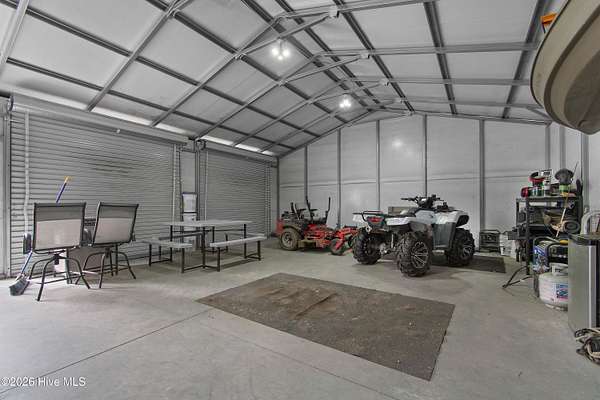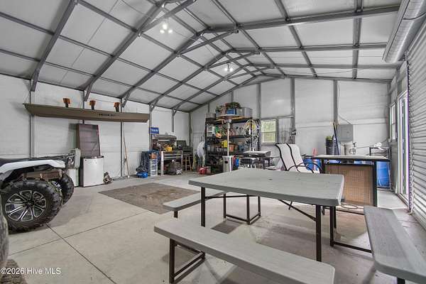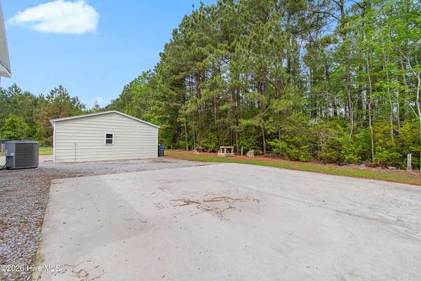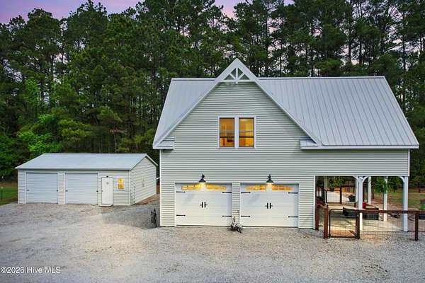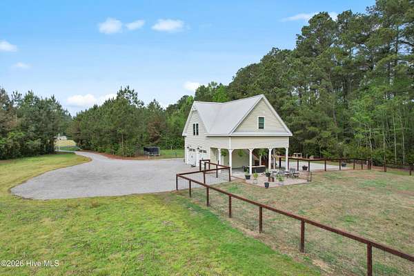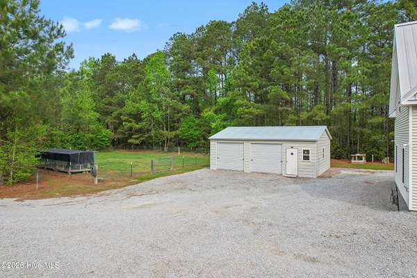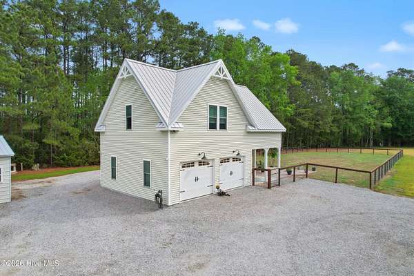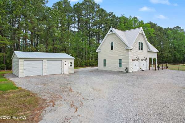 Searching for privacy and acreage near the coast? This one delivers. Built in 2019, this custom Carriage House sits on 6.31 acres, offering a peaceful retreat surrounded by mature trees and tucked away from coastal developments. A discreet entrance leads you into a wide-open property that feels both private and inviting. Upstairs, you'll find 810 sq. ft. of bright, open living space with LVP flooring, a modern kitchen featuring shaker-style cabinetry, quartz countertops, stainless steel appliances, a pantry, and a central island with a stainless steel top. The spacious bedroom includes two large closets, and the full bath also incorporates a convenient laundry area. A tankless water heater adds efficiency and comfort. The ground-level ''garage'' has been thoughtfully converted into a 605 sq. ft. studio-style living area, complete with LVP flooring, a den space, sleeping area, large commercial-grade sink, refrigerator, full bath, and additional storage. Outside, enjoy a large covered patio--perfect for relaxing in the shade--and a fenced area ideal for pets. The property also includes a 752 sq. ft. detached two-car garage/metal building, offering ample space for storage, hobbies, or equipment. There's plenty of room for boats, RVs, trailers, and more. And if you're dreaming bigger, there's ample space to build a primary residence and create your ideal countryside estate while living in the Carriage House and later using it as a guest retreat or income opportunity. This homestead is a peaceful, unrushed 25 mile drive from Sunset Beach Island, NC. Don't miss this rare chance to own a unique, tranquil retreat.