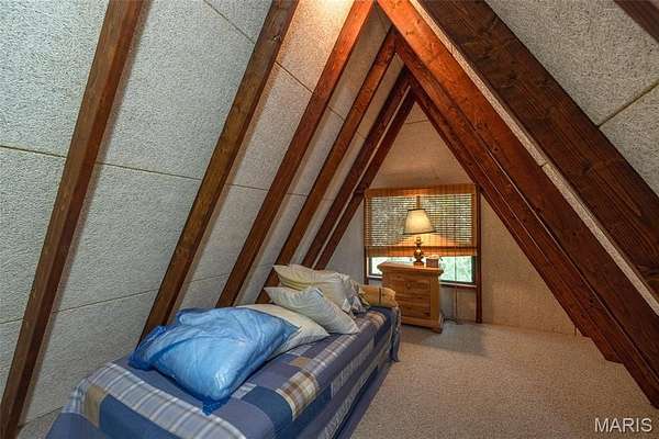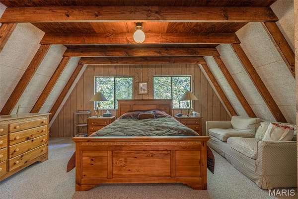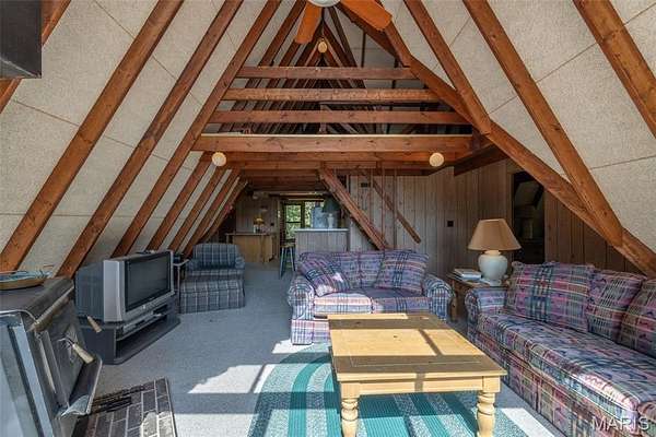 Beachfront Property! Enjoy everything Innsbrook has to offer with this timeless T-frame chalet. Overlooking 12-acre Lake Scheffborg with direct access to the adjoining Innsbrook beach, this 2-bedroom, 2-bath chalet features a main-level primary suite, open great room with wood-burning fireplace, separate dining area, and kitchen with breakfast bar. Upstairs offers a second bedroom and loft. Enjoy lake views from the large wraparound deck, perfect for relaxing or entertaining. Set on approximately 2.5 acres, this level, wooded lot offers exceptional natural screening on one of Innsbrook’s top fishing lakes. Offered fully furnished, schedule a showing today and be ready to enjoy lake life this Spring!