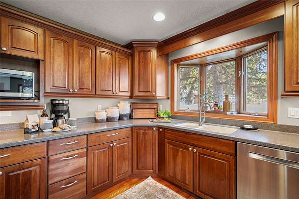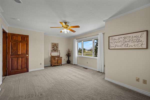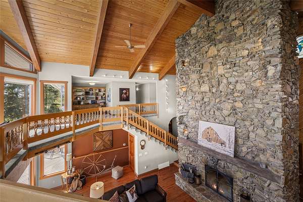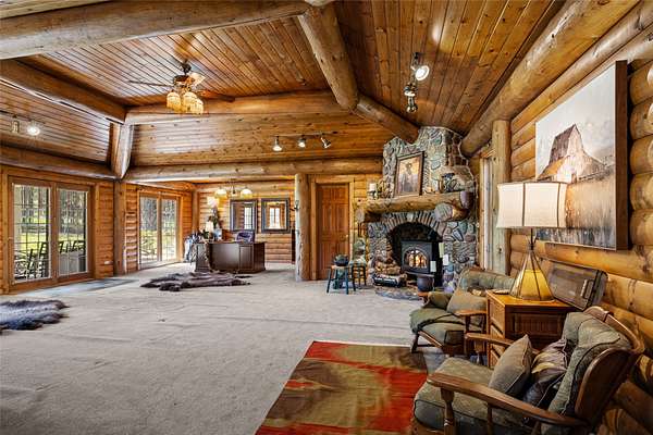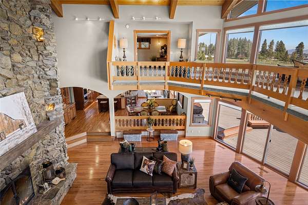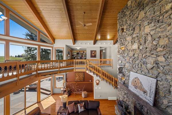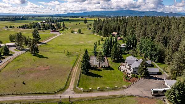 Welcome to a truly exceptional country estate in the heart of the Flathead Valley! Sheltered by old-growth pines to the west, this 5.29-acre 6400+ sq ft 7bd/5ba property offers the rare balance of recreation and privacy. Equestrian-ready, the estate boasts multiple fenced pastures, a well-equipped 3-stall horse barn with tack room, hay storage, and equipment bays...ideal for the discerning sports enthusiast, equestrian, or nature lover. Striking craggy rock exterior accents echo the dramatic stone fireplace that anchors the soaring great room, where floor-to-ceiling windows capture breathtaking sunrise views of Glacier National Park, North Fork, Columbia & Swan Mountain Ranges. Warm, natural finishes abound throughout the home! The log-accented media/entertainment room boasts a wet-bar, gas fireplace & private covered patio. Outdoor amenities are equally impressive! See supplement for add'l details. PROPERTY HIGHLIGHTS - 7 bedrooms | 5 bathrooms | 6,400+ sq ft - 5.29 usable, landscaped acres framed by mature trees - Eastern exposure with stunning sunrise views of Glacier National Park, North Fork, Columbia & Swan Mountain Ranges - Craggy rock exterior and architectural accents - Expansive 1,100+ sq ft terraced deck with mountain views INTERIOR FEATURES - Grand vaulted great room with floor-to-ceiling stone fireplace - Full wall of windows for abundant natural light and panoramic views - Cherry cabinetry, solid oak flooring, and custom stained-glass accents throughout - Log-accented media/entertainment room with wet bar, gas fireplace, and private covered patio access - Chef-style kitchen with ample storage and prep space - Spacious bedrooms ideal for multi-generational living or guests - Elegant bathrooms with tile, stone, and upgraded fixtures - Dedicated laundry/mudroom entry from breezeway - Multiple living areas for entertaining, relaxing, or working from home OUTDOOR AMENITIES - Large 1100 sq ft terraced deck overlooking open meadow and mountain backdrop - Custom fire pit for evening gatherings under the stars - Multi-sport court (tennis & basketball) - Fully fenced pasture areas ideal for horses or hobby farming - Landscaped grounds with underground sprinklers and drip irrigation for gardens and beds EQUESTRIAN & STORAGE BUILDINGS - 3-stall horse barn with: o Tack room o Hay & equipment storage o Water access - 54' x 16' RV Bus Barn with high clearance and 50-amp service - 2-car attached garage via breezeway - 3-car detached garage/workshop with ample room for tools and hobbies UTILITIES & INFRASTRUCTURE - Private, shared well and septic - Efficient heating and gas fireplace systems - High-speed internet available - Underground irrigation system throughout landscaped areas LOCATION - Minutes to Kalispell Regional Medical Center, major shopping centers, and schools - ~15 minutes to Glacier Park International Airport (FCA) - ~35 minutes to Whitefish Mountain Resort - ~45 minutes to Glacier National Park - ~15 minutes to Flathead Lake access IDEAL FOR: - Primary residence or multi-generational compound - Seasonal Montana retreat - Horse owners or hobby farmers - Vacation rental or investment property (buyer to verify zoning/regs) ADDITIONAL INFO - Furnishings negotiable This rare offering combines the serenity of rural Montana with high-end finishes and exceptional functionality. Whether you're hosting guests, raising animals, exploring the outdoors, or simply enjoying quiet sunrise mornings with mountain views, this is a property where lasting memories are made