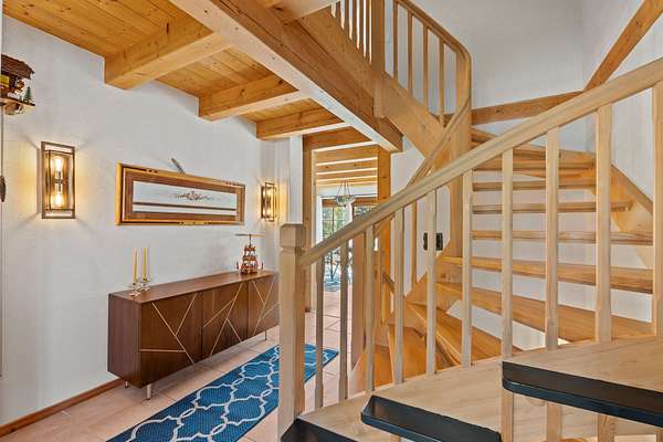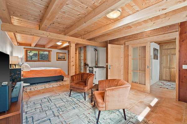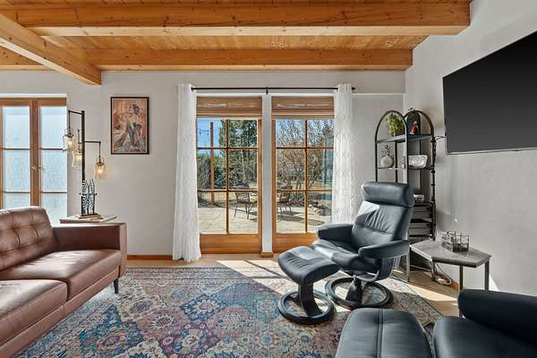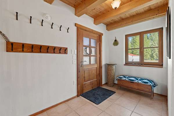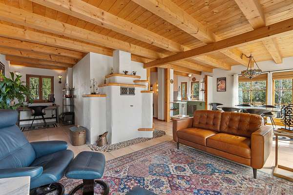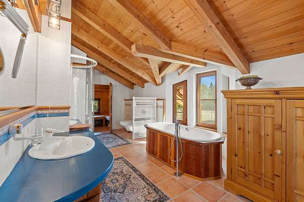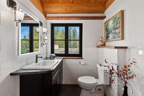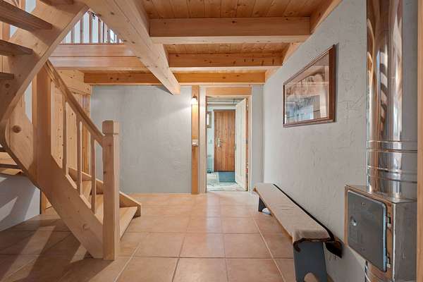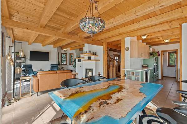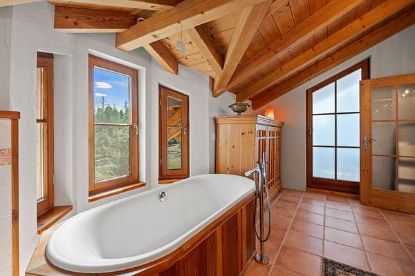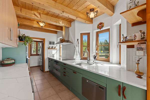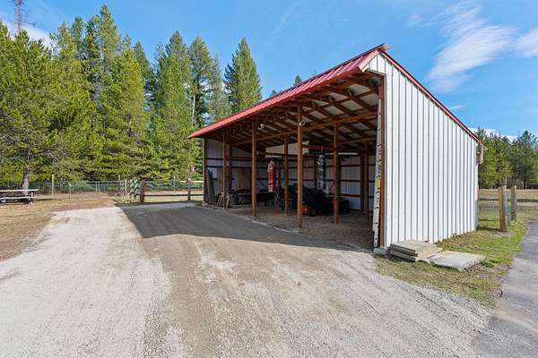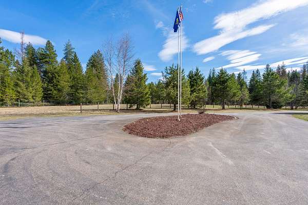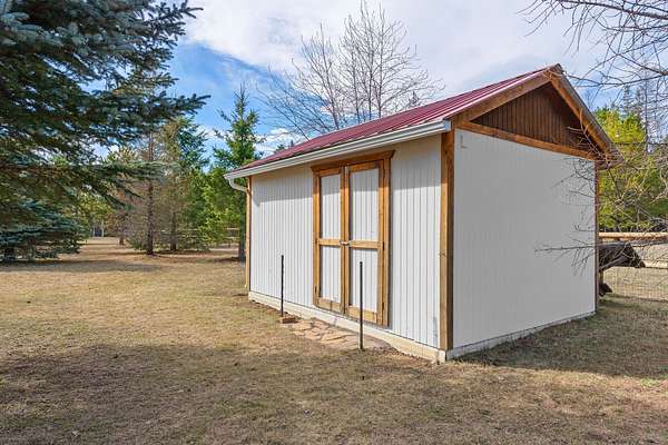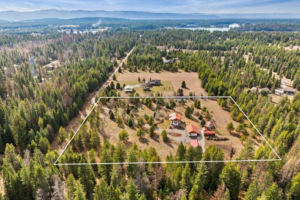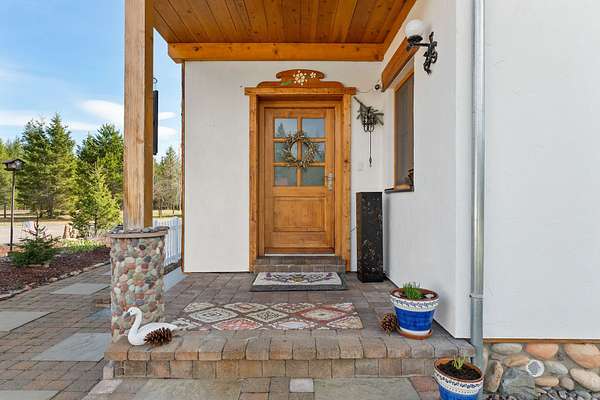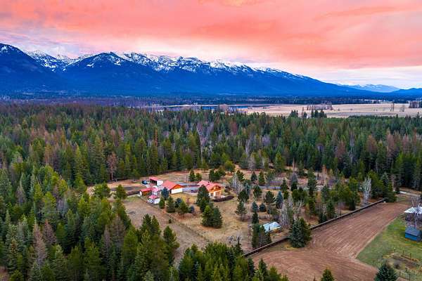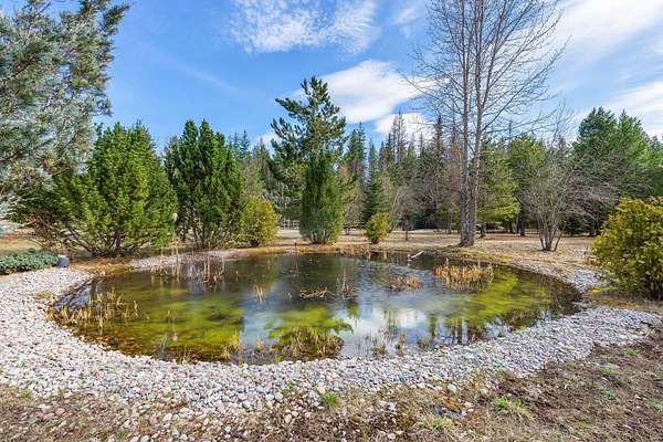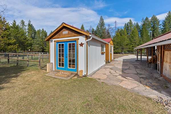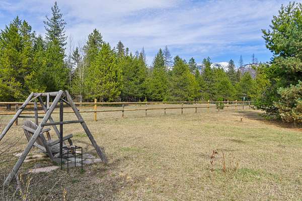 Where European craftsmanship meets Montana mountains, this Bavarian German-built chalet offers a rare combination of precision, durability, and quiet beauty. Set on 5+ private, fully fenced and gated acres, the property is positioned to capture stunning views of the Swan Mountain Range and is thoughtfully designed to offer moments of peace, quiet, and true tranquility. The chalet is constructed with poured concrete foundations and a durable tile roof, an intentional approach to longevity and structural integrity. Inside, the layout is open and efficient, defined by exposed timber beams, vaulted ceilings, and a traditional European masonry fireplace that serves as the central focal point of the living space. The upper level is dedicated to the primary suite, offering a private balcony and a well-appointed bath complete with a cedar-lined sauna. The design emphasizes both function and comfort, creating a quiet, private retreat. The lower level features a private studio space with its own kitchenette and a wood-burning cookstove, providing flexible use for guests, extended living, or workspace. The grounds are thoughtfully developed for both utility and sustainability. A stone-lined pond is fed by a custom gutter system. The greenhouse, with raised beds and established plantings, is well-suited for year-round cultivation. Outbuildings are substantial and purpose-driven, including a detached garage and shop with lean-to storage, a large workshop shed, and a separate hobby structure. A root cellar is located within the home, adding practical, year-round storage. Modern systems include fiber internet to the home and a wired generator setup to ensure reliable, efficient living in all seasons. Some furnishings are being offered with the purchase, creating an opportunity for a more seamless transition into this well-appointed mountain retreat. This is a property defined by craftsmanship, order, and lasting quality, designed to function as well as it endures.