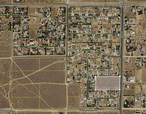 Development site in a million-dollar neighborhood. Seller will consider seller financing with 50% down! Located within Lancaster's ''semi-rural'' luxury corridor, this flat 4.69 acre land parcel has frontage on 30th Street West and is surrounded on 3 sides by the ''Premier Collection'' community. This is a highly desirable neighborhood of sprawling semi-custom single-story homes and impressive 2-story homes, most of which are over 4,000 sqft. Homes in this neighborhood are frequently selling for over $1,000,000. The subject property is a true ''in-fill'' lot, as it is the missing piece that would complete the Premier Collection. West Avenue M-6 is a stub street that terminates at the west side of the property, and it could be easily extended through this property to create a tract. Homes could then be built on each side of the street. The property owner previously obtained a tract map (TTM 66793), now expired, yielding 8 half-acre lots. A developer could therefore purchase this property, re-apply for the tract map, and build 8 estate homes that could sell for well in excess of $1,000,000 each. There is currently strong demand for luxury new homes in the Antelope Valley. Another option is for a developer to utilize the new ADU laws and build 16 ''build to rent'' homes on the 8 lots, which would be in very high demand due to the location. The seller also previously obtained a water letter, grading report, and environmental report. Water, sewer, gas, and electricity connections are all present. A water meter box appears to be present alongside 30th St. Paraclete High School, a well-regarded private school, is right down the street. Additionally, this property may also be well-suited to someone looking for an oversized lot to build a sprawling custom estate with ample room for a tennis court, horse facilities, guest houses, etc. This is truly a rare find; an in-fill land parcel nestled within one of the Antelope Valley's most desirable residential areas.