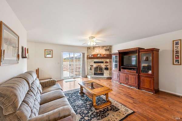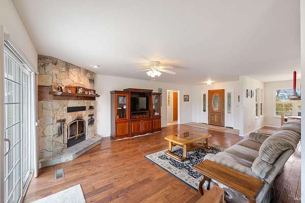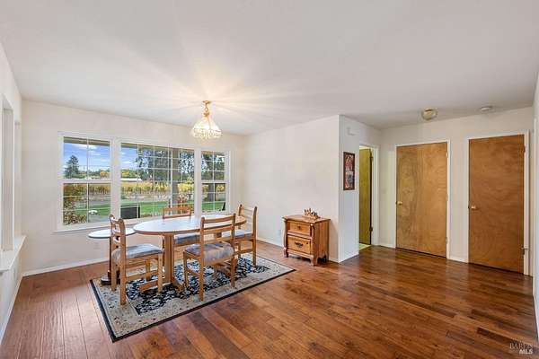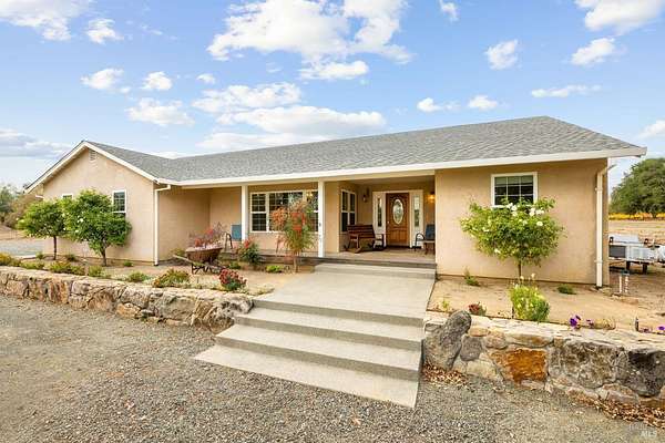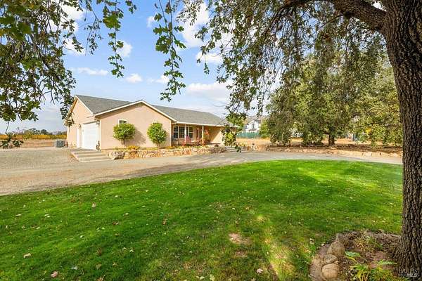 Discover a remarkable opportunity to own a stunning ranch-style home nestled on over two acres of flat land, surrounded by breathtaking vineyard views. This property, located down a private lane, offers the perfect blend of seclusion and convenience, with various shopping amenities just a short drive away. Enjoy the peace and privacy of country living while still being close to all that Napa has to offer. The single-level home boasts three bedrooms and two baths, spanning nearly 1,600 square feet. Step inside to find a beautifully designed kitchen featuring elegant cabinetry and granite countertops, complete with a cozy eat-in area. The inviting living room overlooks the picturesque vineyards, highlighted by a charming fireplace that adds warmth and character. A separate dining area offers majestic views of the vineyards, making every meal a delightful experience. The property also features fruitful trees and a stunning artistic oak tree in the front yard, providing a perfect backdrop for your dream vineyard or whatever your imagination desires. Built in 2008, this home is a perfect canvas for your future. Embrace the Napa lifestyle in this extraordinary setting.