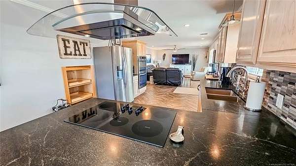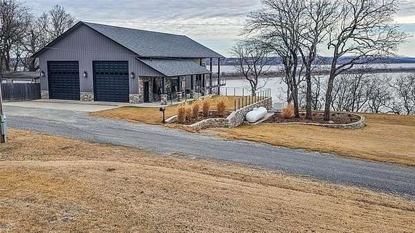 Experience the ultimate Lake Eufaula lifestyle in this stunning 3-bedroom, 3-bathroom custom- owner built home with most all of the furnishings included! Situated on seven total lots spanning approximately 2 acres, this property offers unparalleled views of Eufaula's largest open waters and a park-like setting designed for year-round entertaining. The meticulously landscaped grounds feature immaculate irrigated lawns, a versatile 30 x 30 shop building, and a dedicated court adaptable for basketball or pickleball. Built to withstand Oklahoma's extreme conditions, the home is equipped with a 45KW generator and a 1,000-gallon propane tank. Located just a 5-minute ATV ride from Eufaula Cove Marina and downtown Eufaula, and only 10 minutes from Carlton Landing, you are perfectly positioned for recreation, dining and access to Eufaula Cove's Marina, Jellystone Park and boat launching ramps. For those seeking a multi-family retreat, the sellers are also listing their second home directly across the street. This is a rare chance to create a sprawling family compound in a premier lakefront location. Call today to schedule your private showing of this turn-key family ready park retreat!