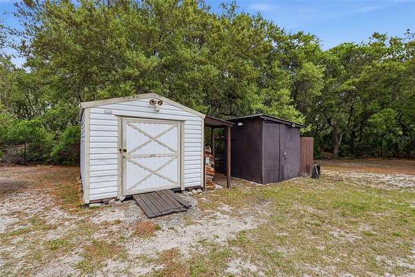 Under contract-accepting backup offers. Welcome home to 41736 Apollo Lane. This private 2 acre property is fully fenced with additonal fencing for horses or other livestock. The main home is 3 bedrooms, 2 baths and nearly 1900 sq feet! Interior features include a split floor plan, office space, separate living rooms, a large primary bedroom and wood burning fireplace. NEW roof in 2024. Two sheds on the property for storage and a Rainsoft water purification system that conveys. Home is on well and septic. A perfect retreat close enough to major highways. Located on the Lake County side of DeLand. Pine Forest Park, the Seminole State Forest and a U Pick Blueberry farm are all close by. Property also features agricultural zoning, a 30 amp RV hookup, fire pit, two horse stalls and a pole barn; both with power and water. Feeding stations and additional fencing on the property. Private gated entrance with remote, solar lighting and mature landscaping make this a beautiful property.