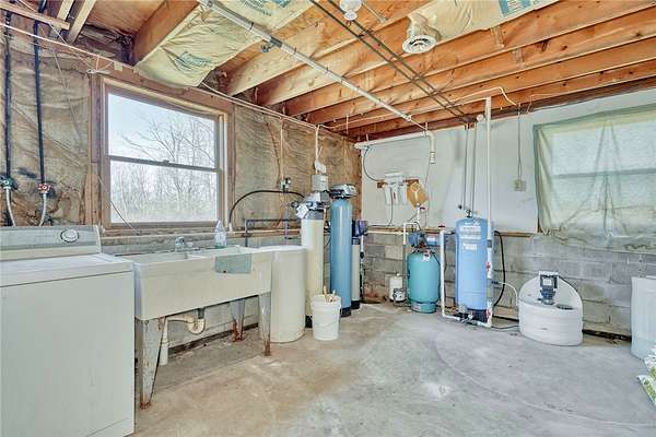 Here is that needle in a haystack you've been looking for! 5.1 acre lot adjacent to State Land. 3 bedrooms up with 2 full baths, nicely updated by Bathfitters. All new flooring throughout this whole level. Amazing bedroom sizes and closet space. Large eat-in kitchen, with all appliances, oversized living room with full front window overlooking front yard. Huge family room ready for all your ideas, slider to back yard, workout room, utility room with laundry area and water system. Plus, a full storage area and workshop with electrical panel and generator panel. Well drilled 150' in the front left and septic is back right. Leaf Guard system and ADT for smoke detectors. This house is nicely set back amongst the trees while also being cleared with long driveway and turnaround area. Furnace is Jan/Feb 2025 and roof was a complete tear off. Come check it out! Showings delayed until Thursday, 4/2. Offers due Wednesday, 4/8 at 10:00am.